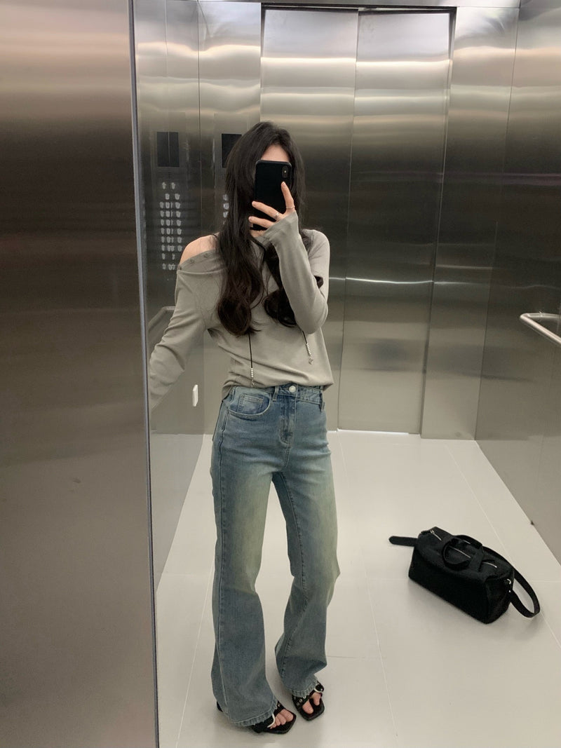 V-neck fake 2-piec set