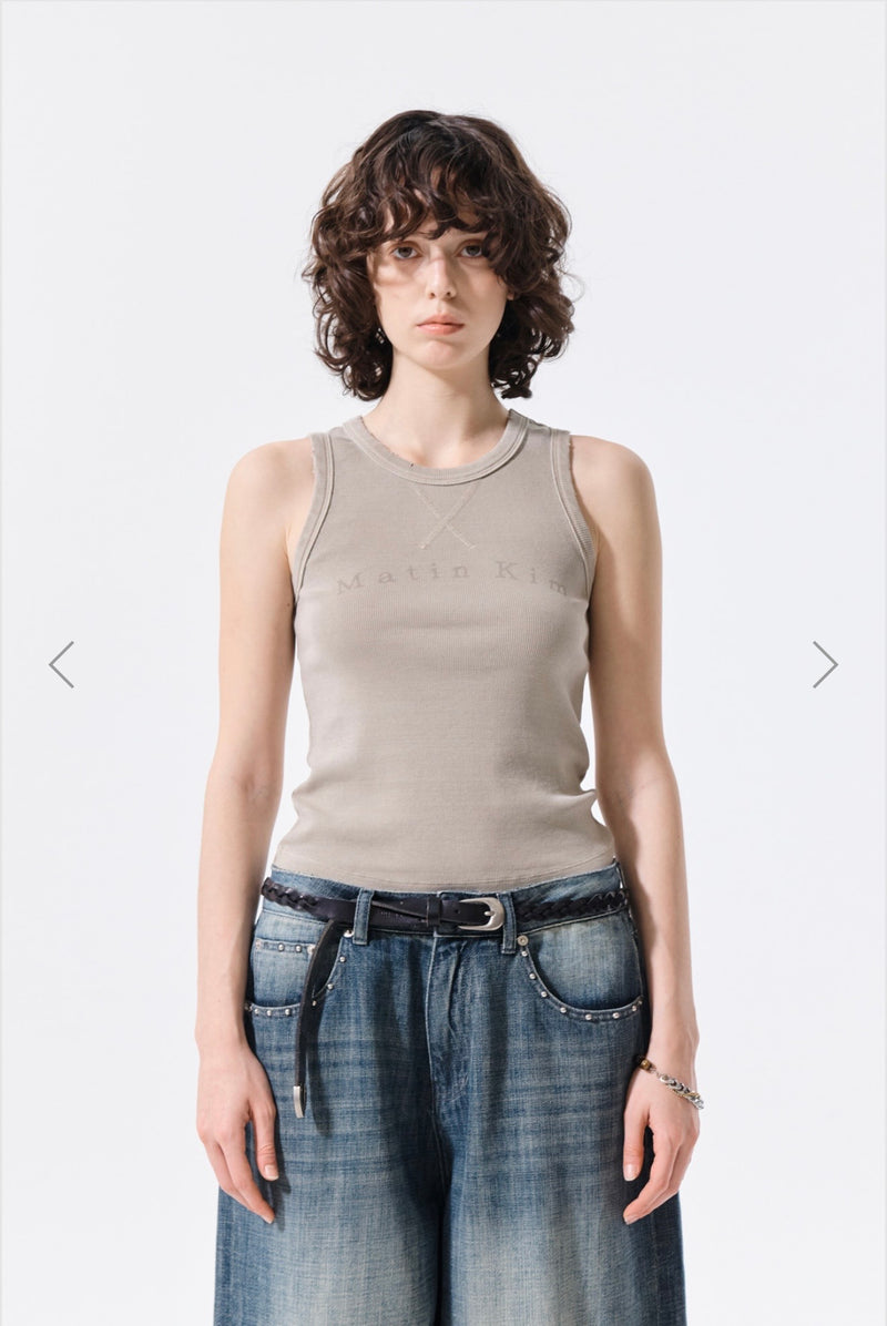 MATIN KIM DISTRESSED SLEEVELESS LOGO TOP IN BEIGE
