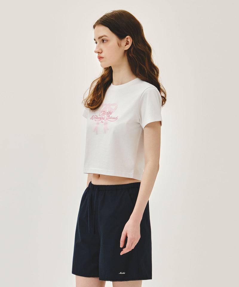 MARITHE FRANCOIS GIRBAUD W SORONA COOL RIBBON GRAPHIC CROP TEE white