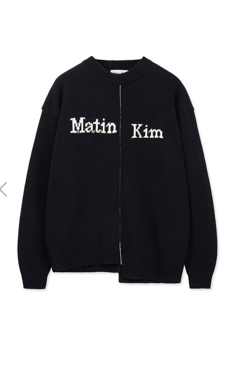Matin Kim ASYMMETRIC LOGO KNIT PULLOVER IN BLACK