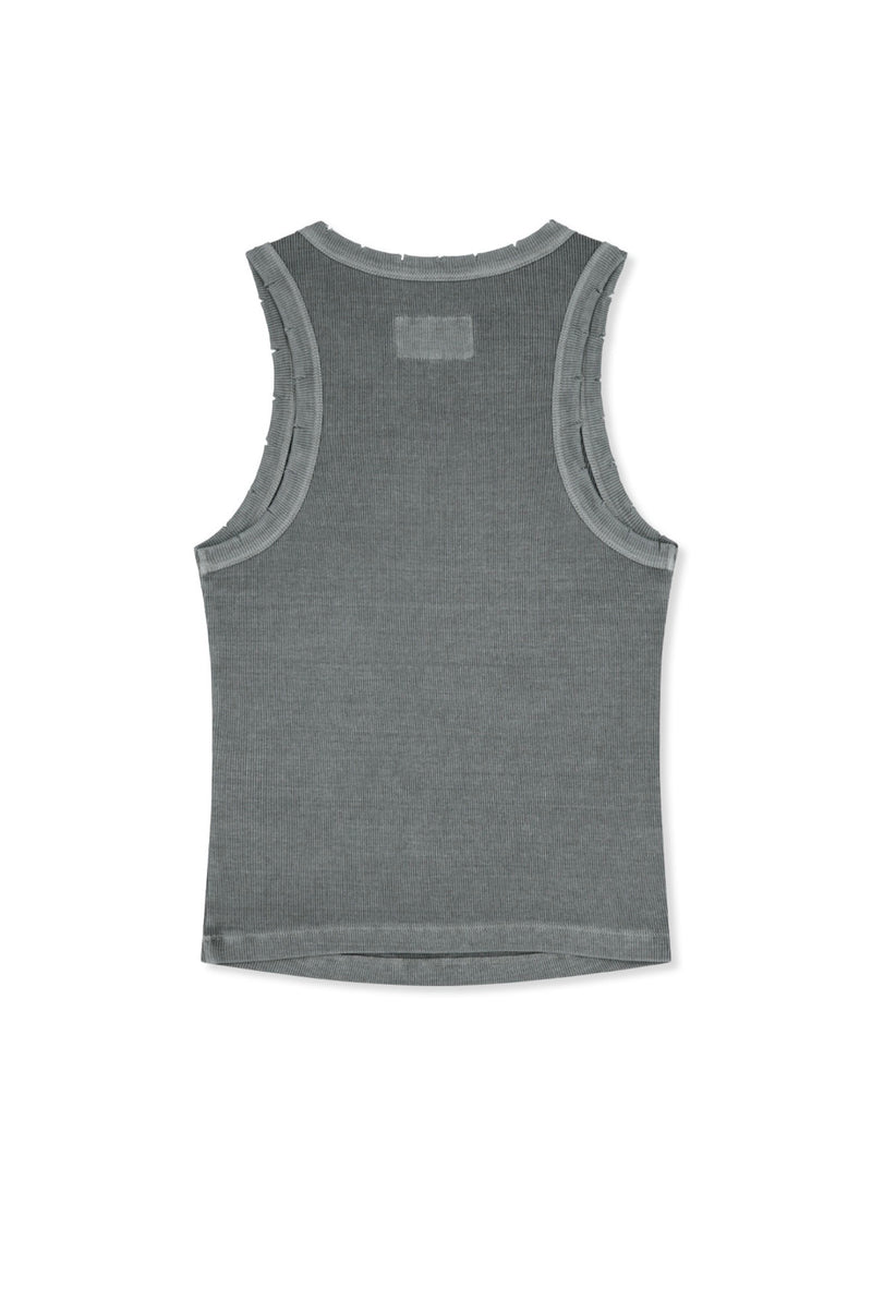 MATIN KIM DISTRESSED SLEEVELESS LOGO TOP IN LIGHT GREY