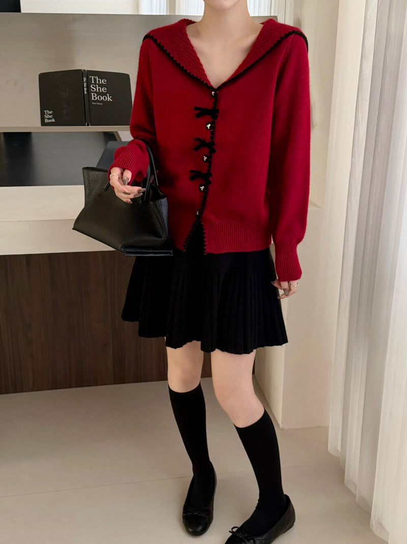 Bowknot button folded collar cardigan