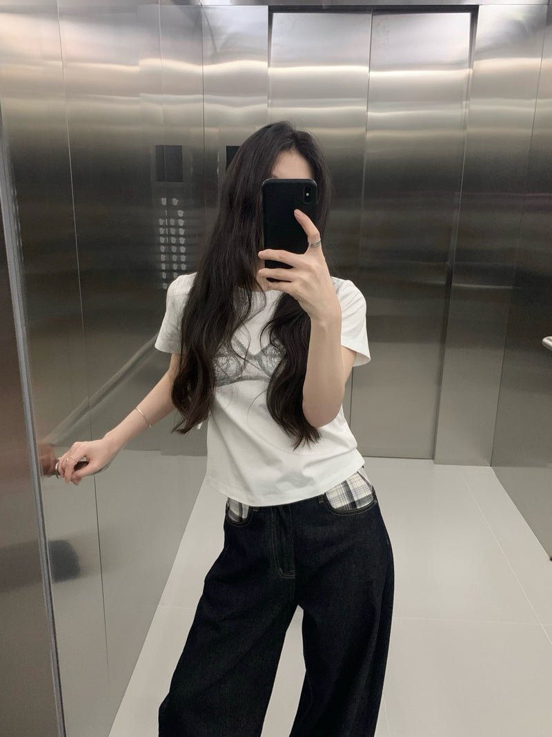 Matin Kim LOGO CUTTED CROP TOP IN BLACK