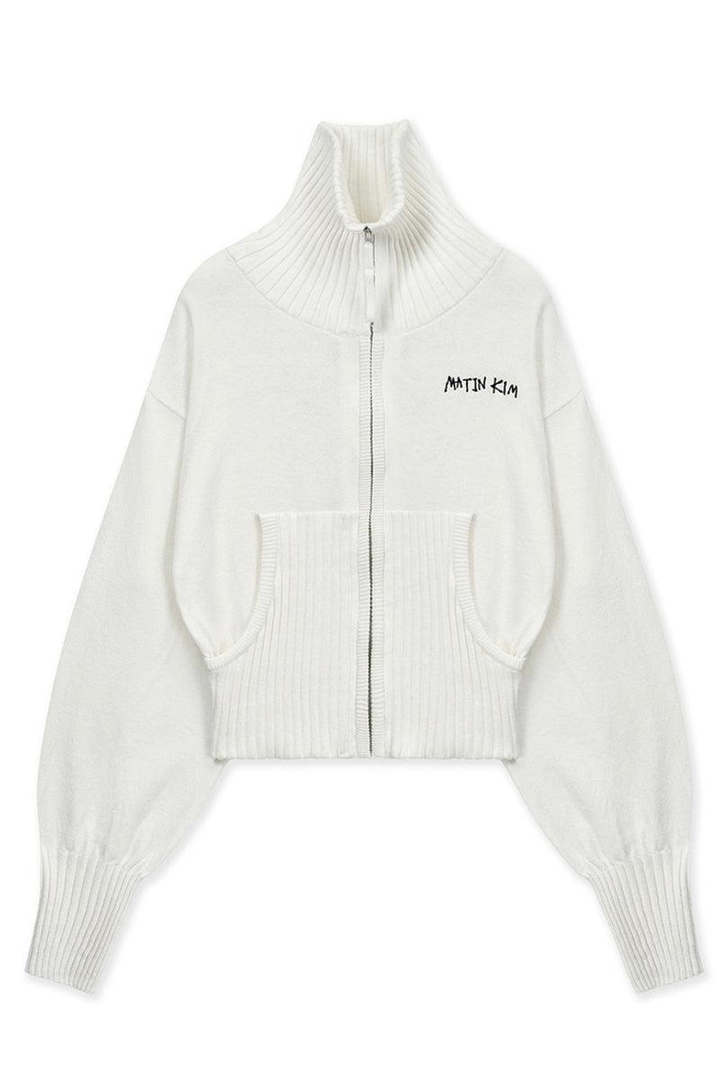 Matin Kim zip LOGO KNIT CARDIGAN IN White