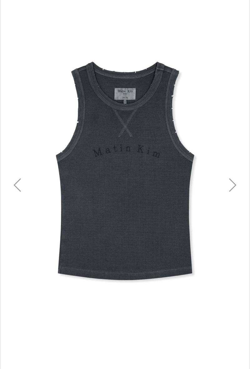 MATIN KIM DISTRESSED SLEEVELESS LOGO TOP IN CHARCOAL