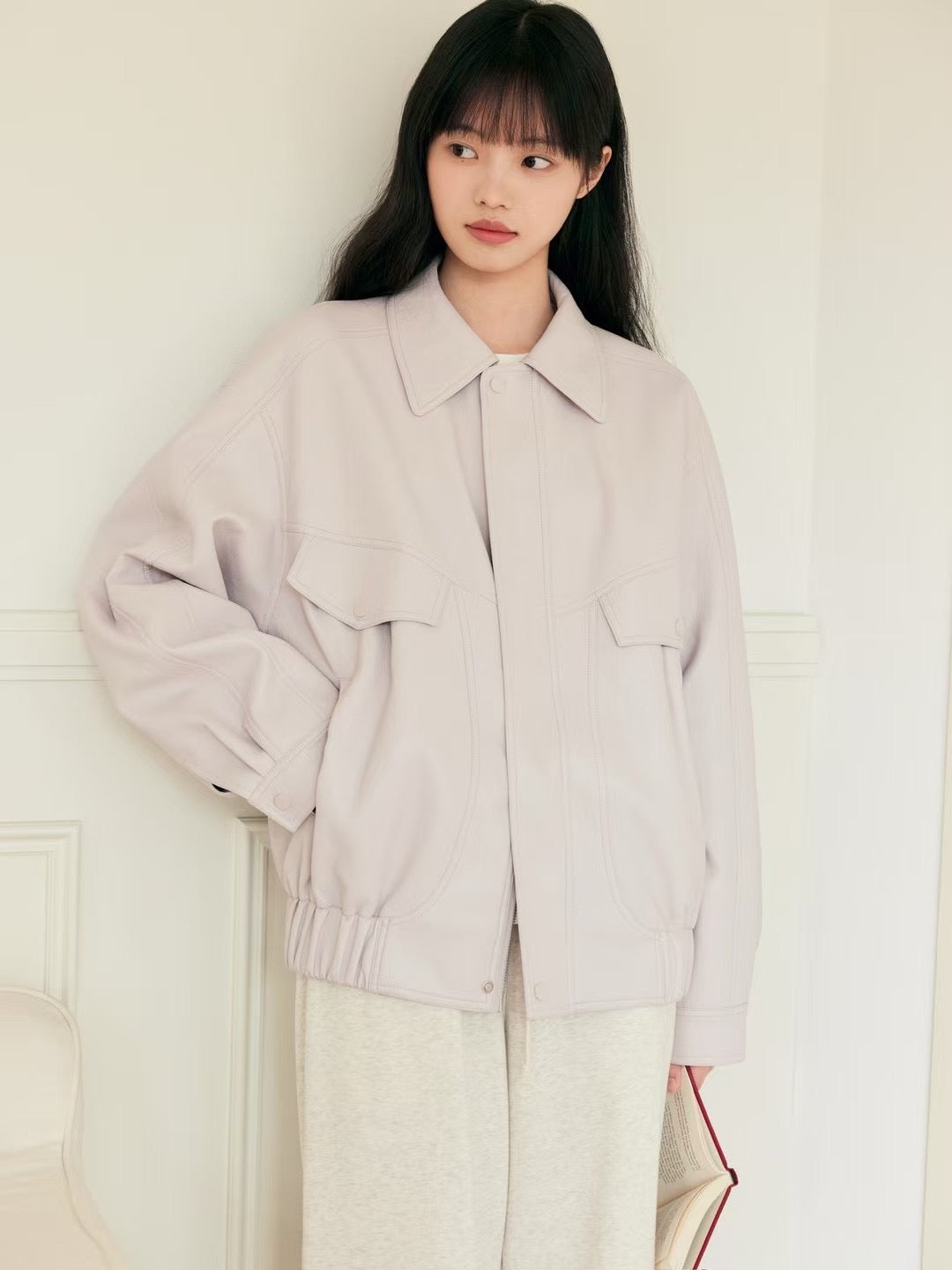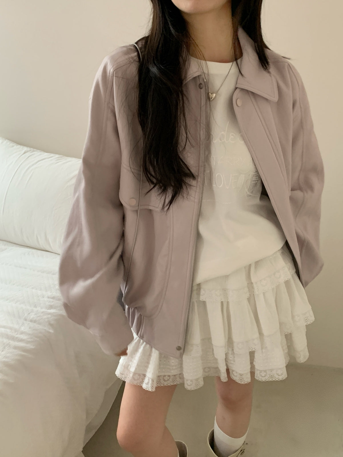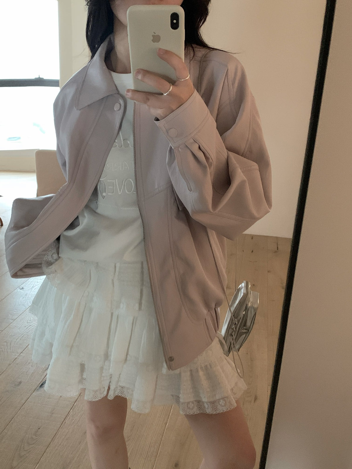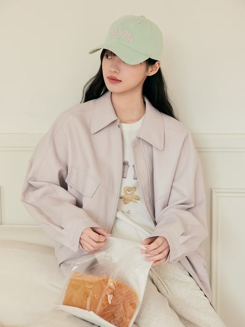 Rose pink faux leather jacket