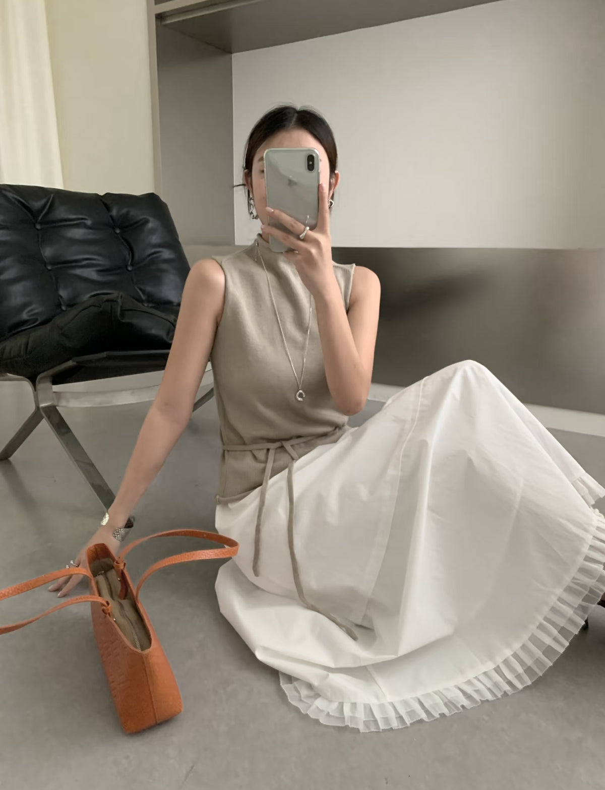 chiffon hem long skirt