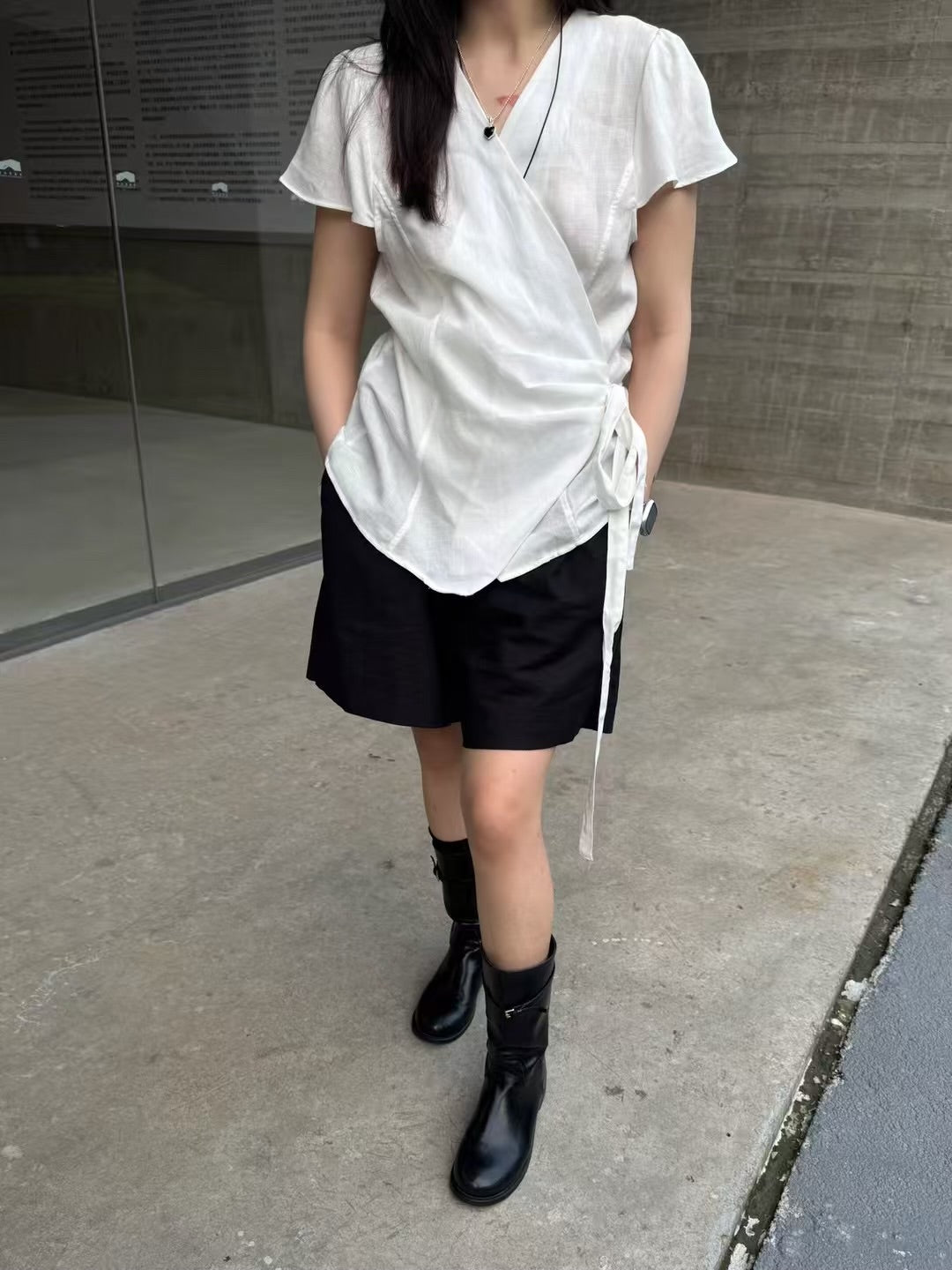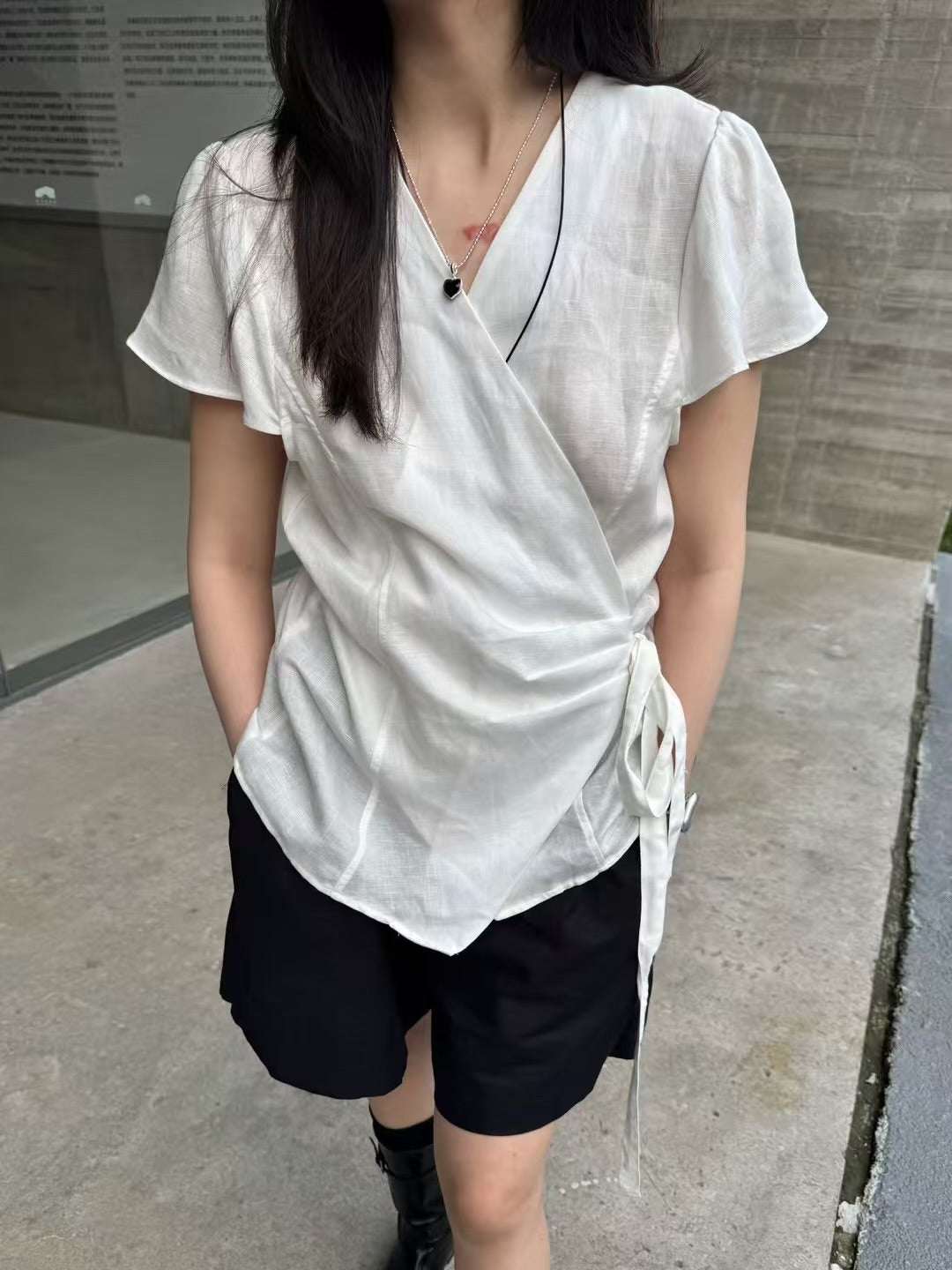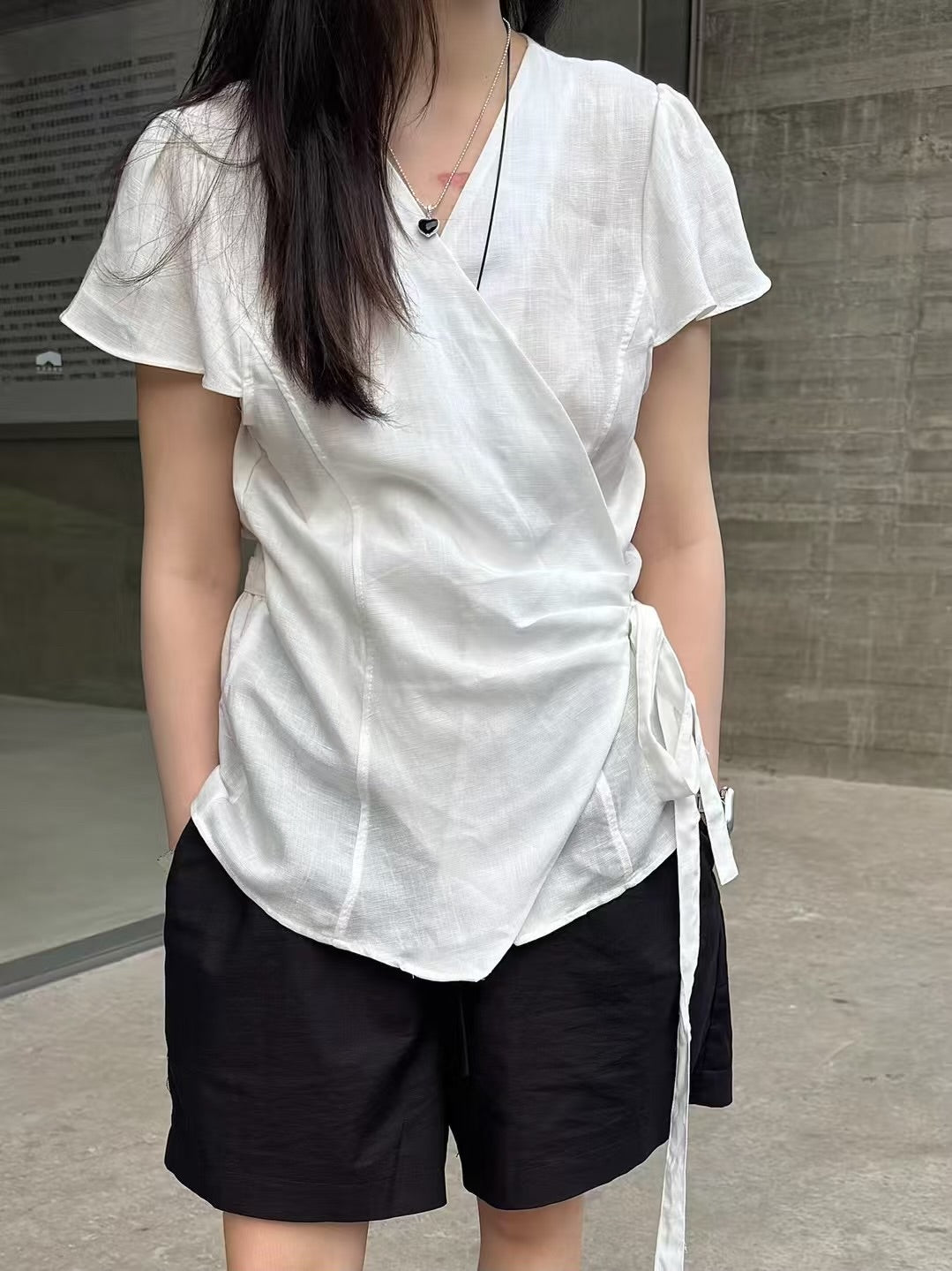Cotton and linen side-tie top