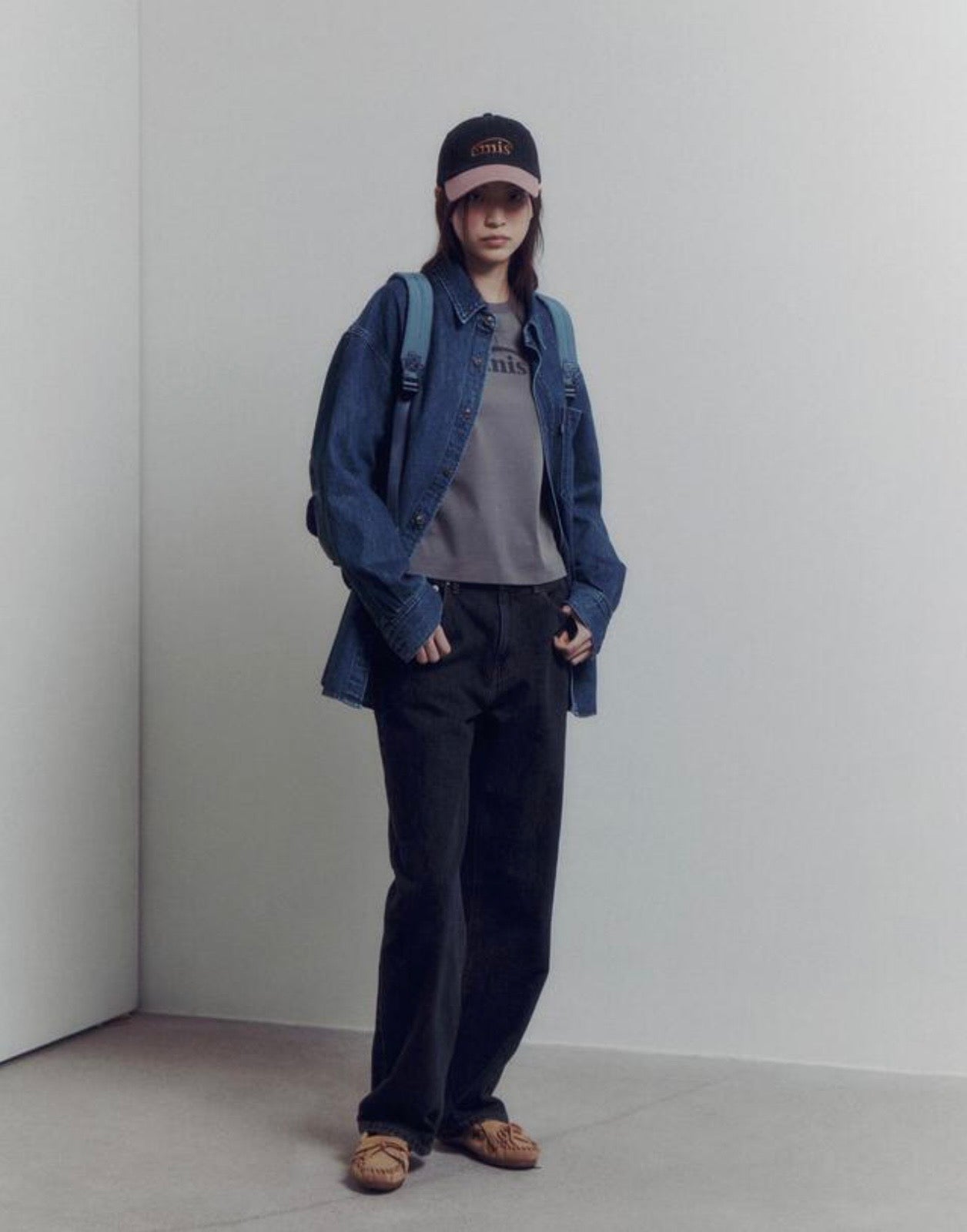 EMIS WASHED DENIM BALL CAP-GRAY/PINK