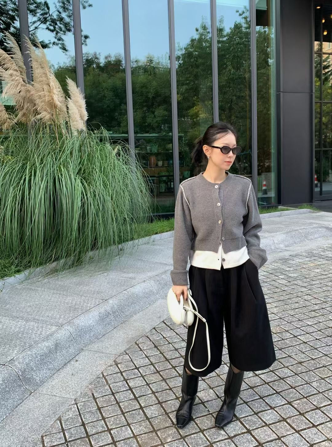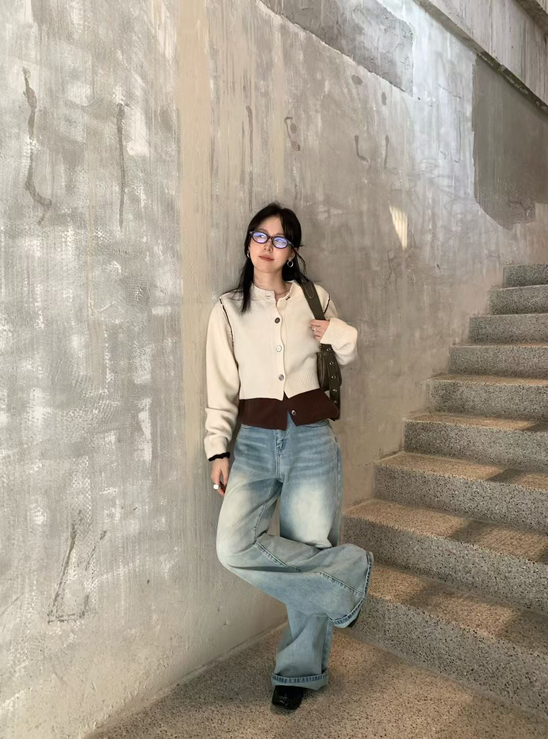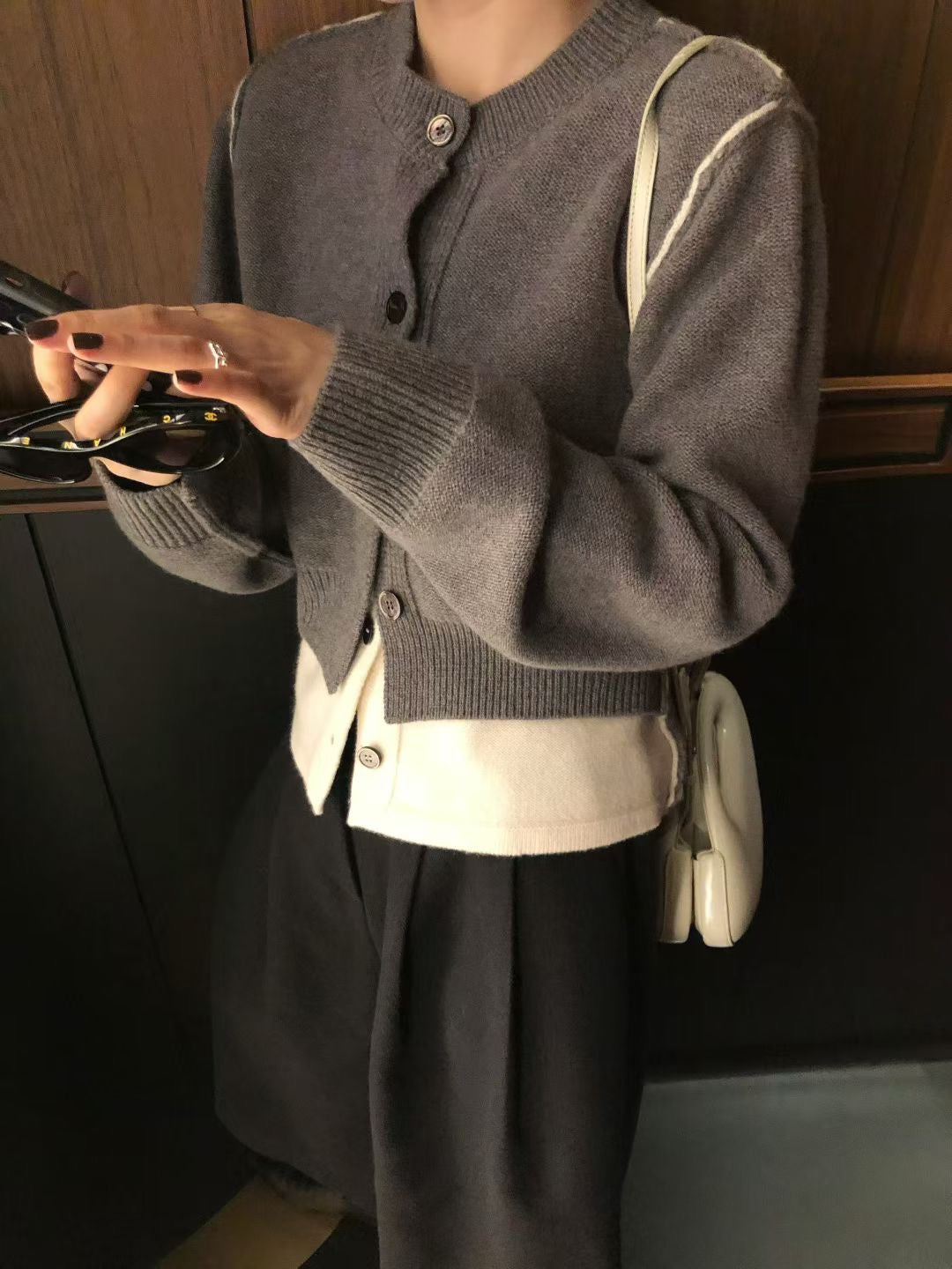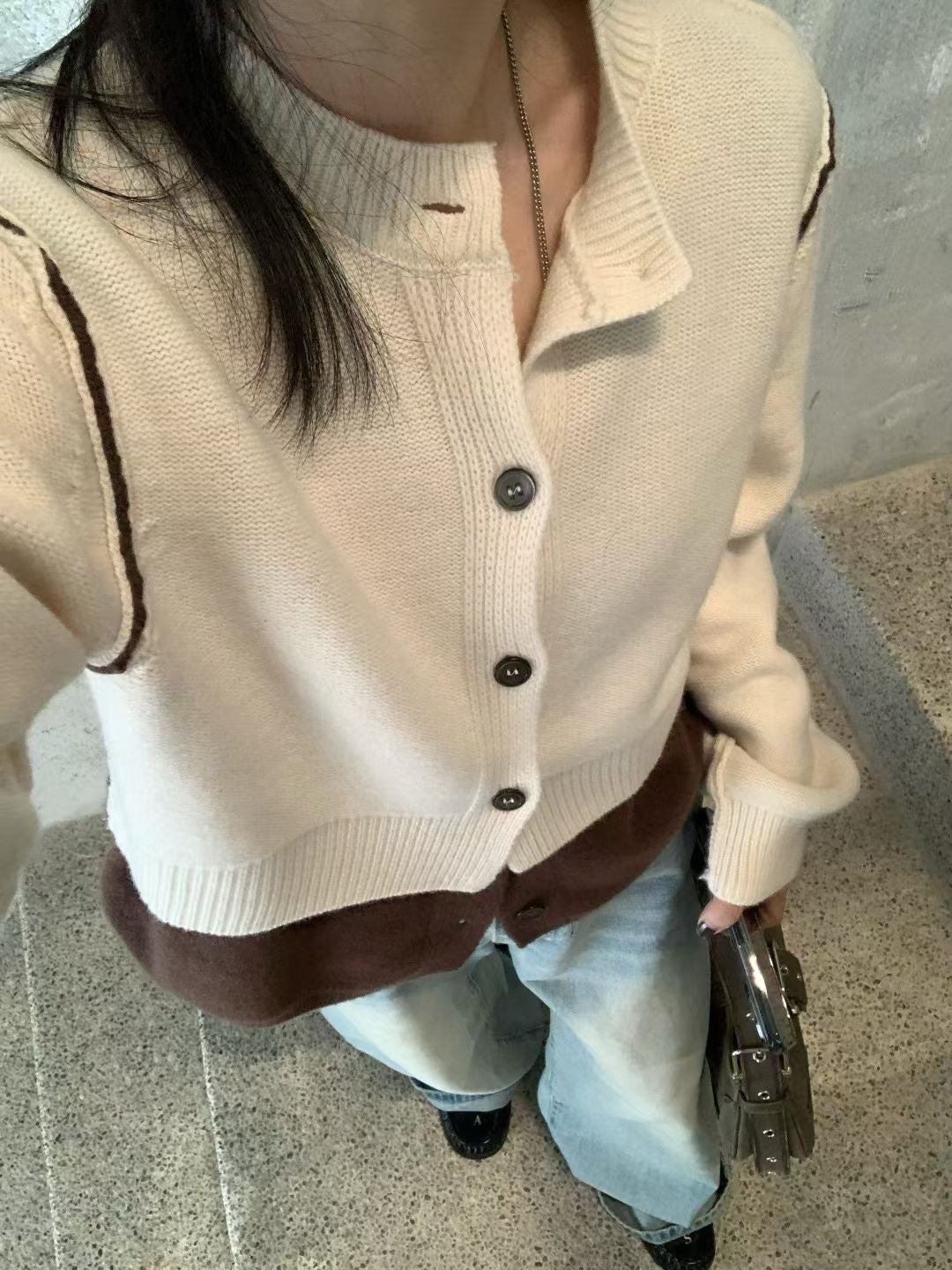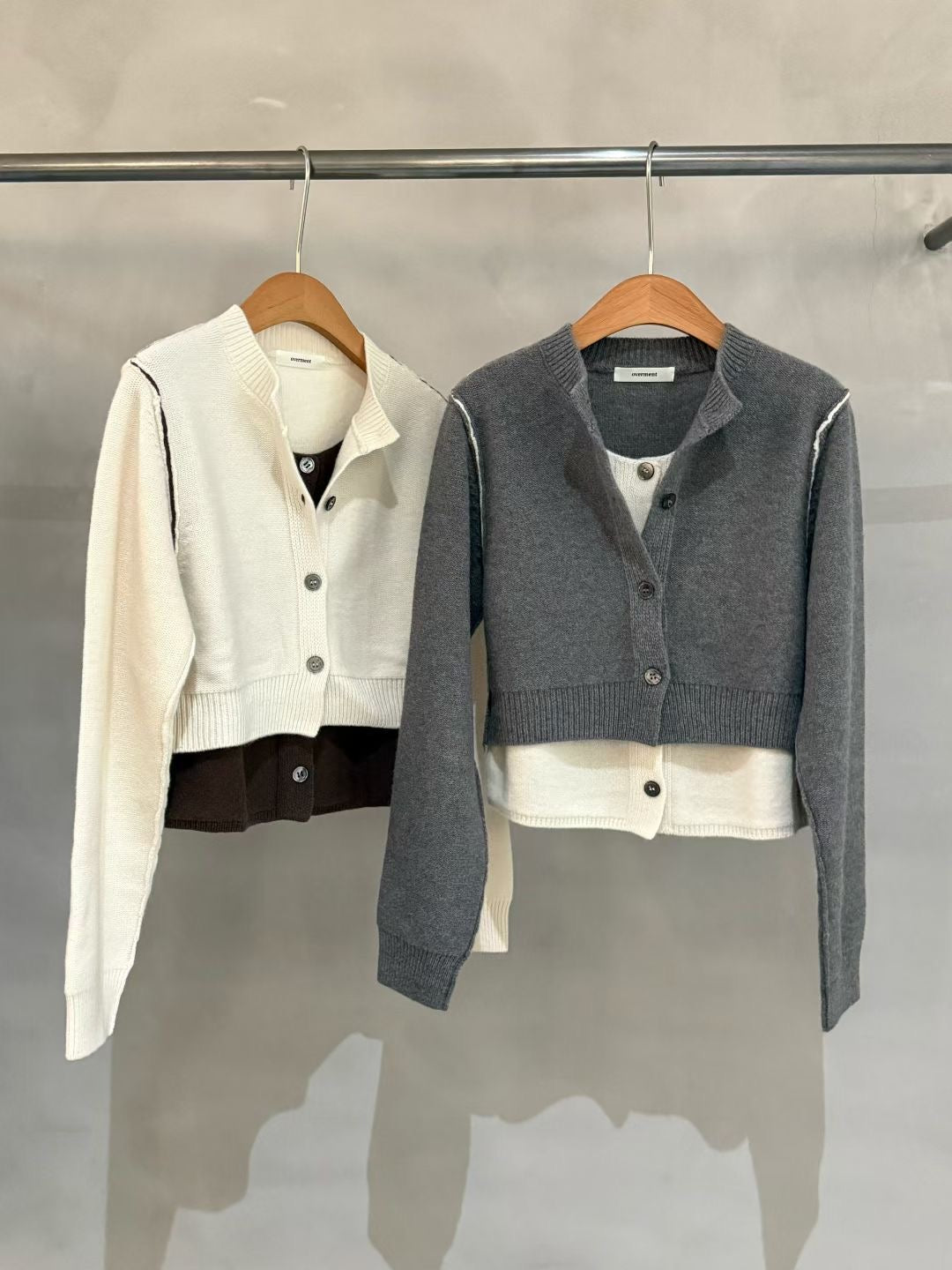 Fake 2-piec stitches cardigan (100% Wool)
