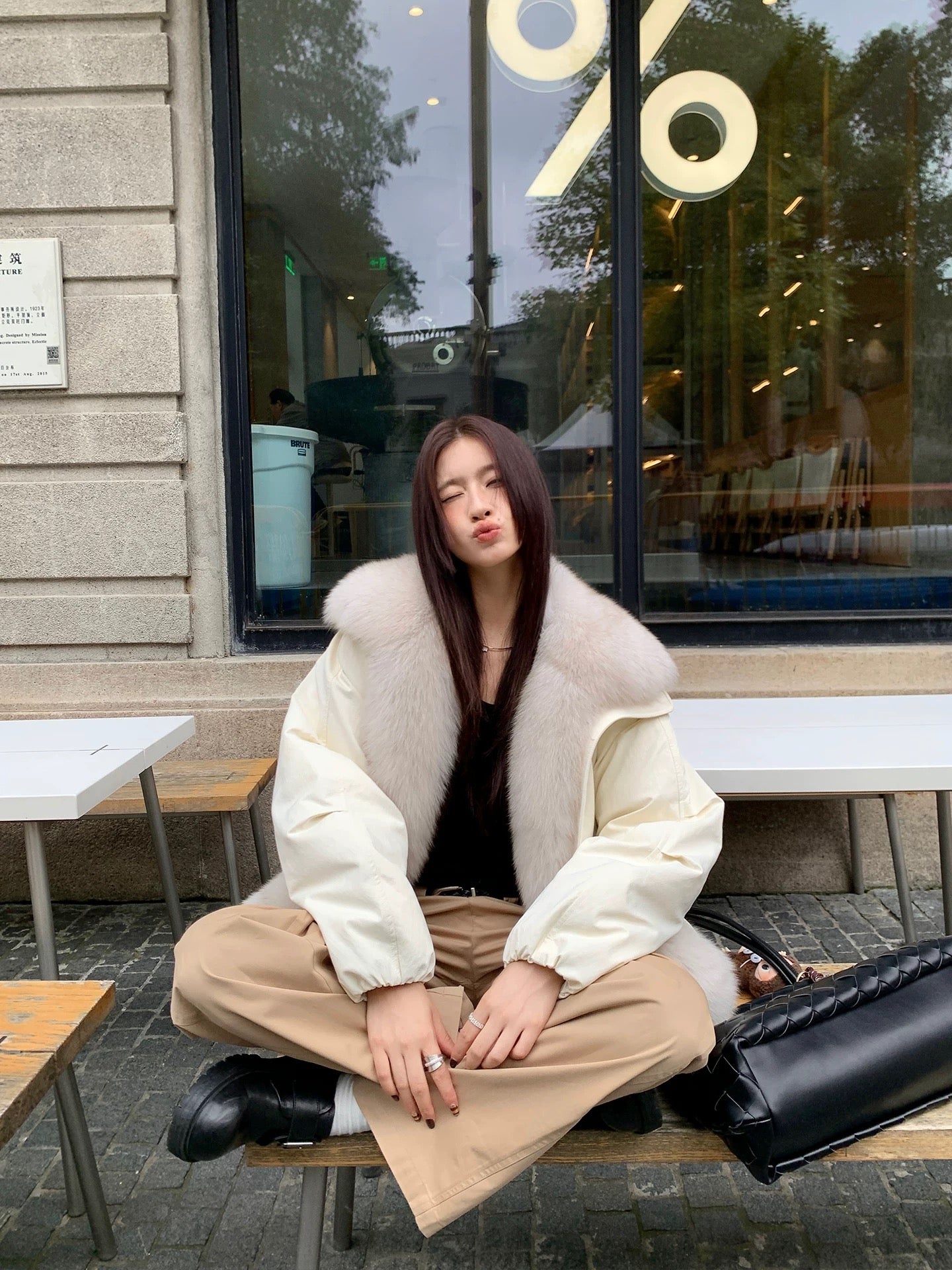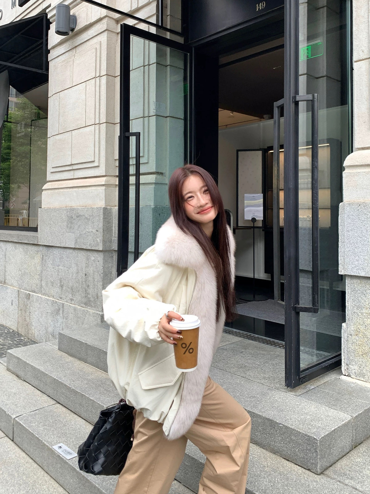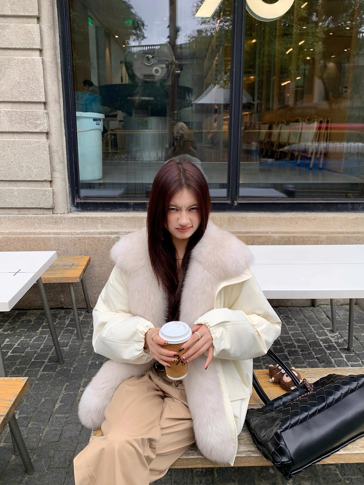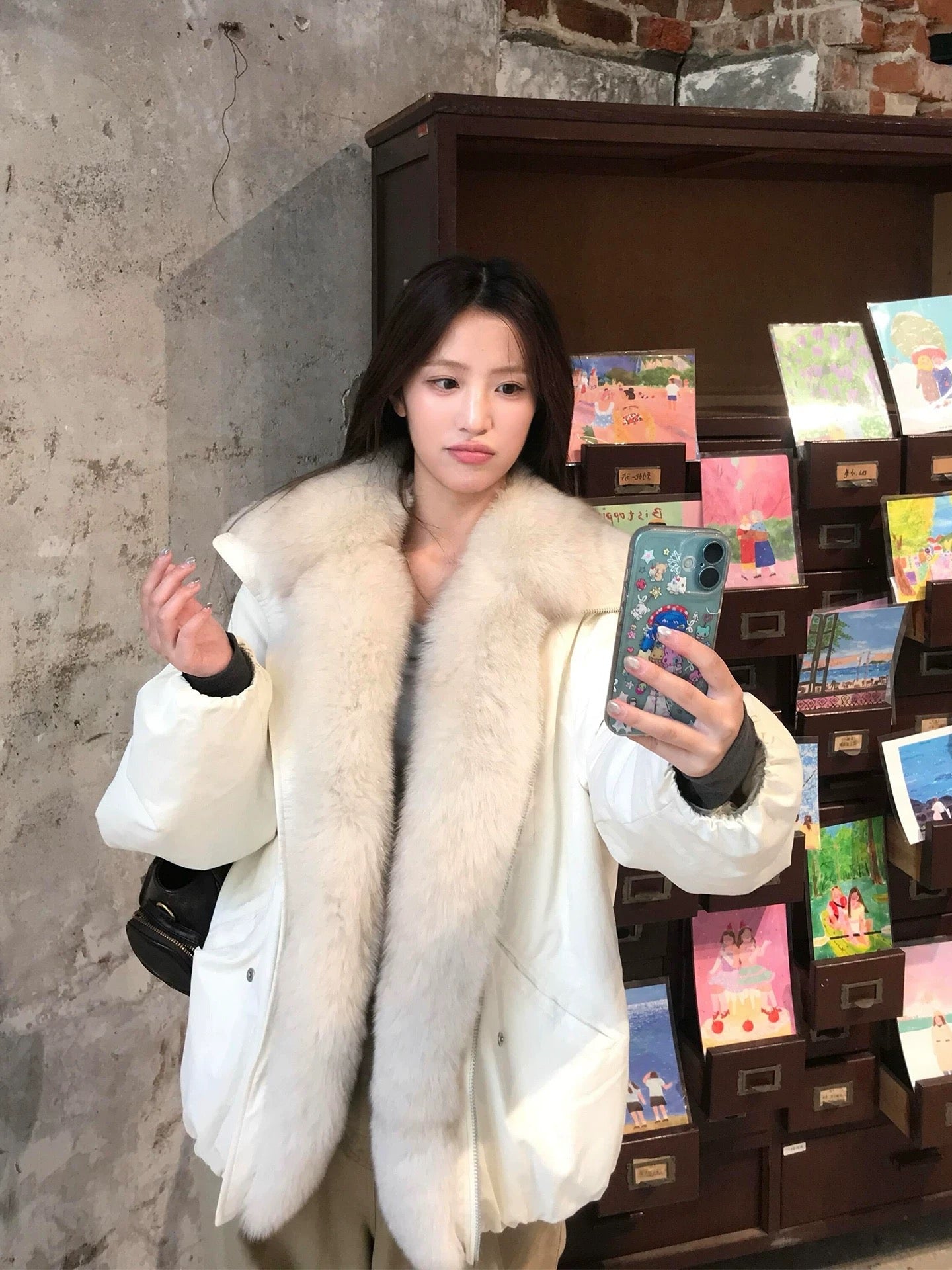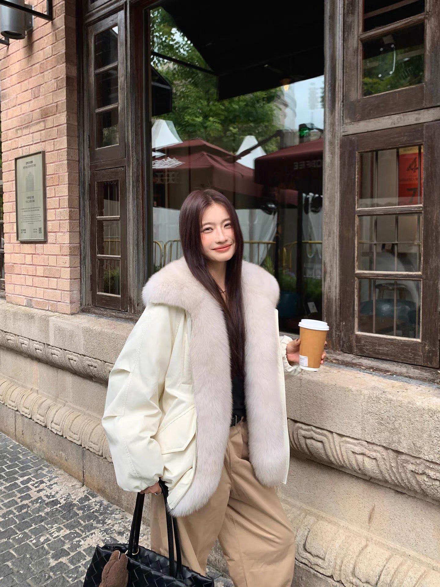 Fox fur collar down jacket(White)