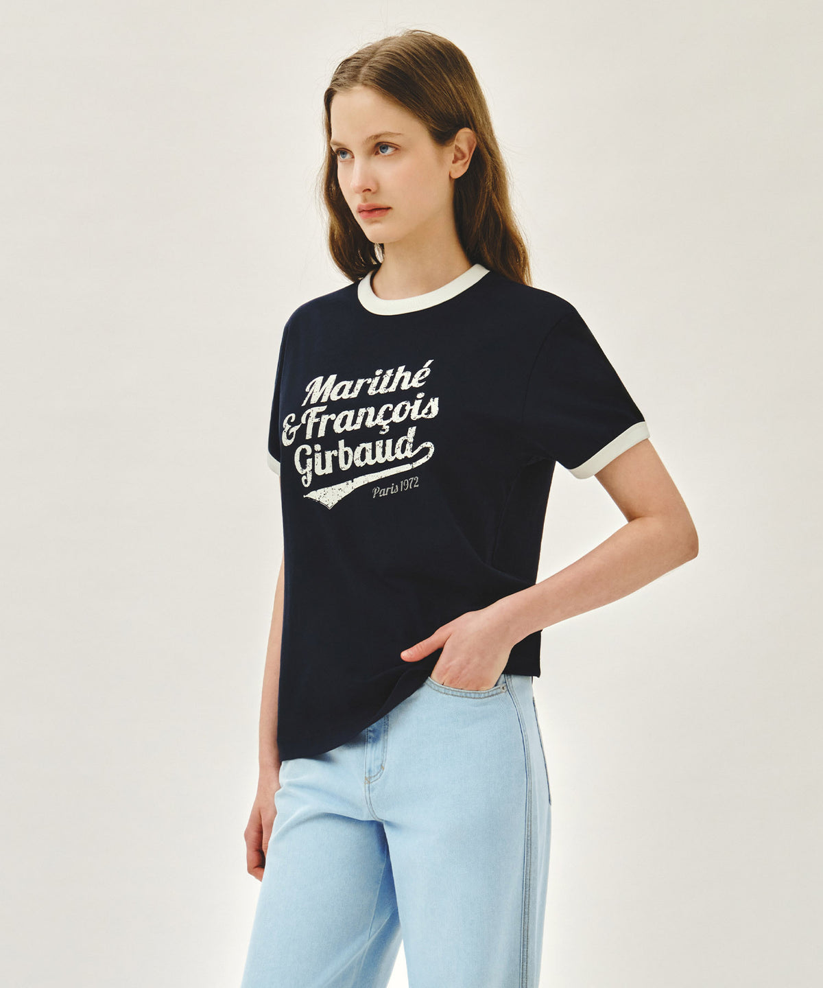 MARITHE FRANCOIS GIRBAUD VINTAGE LOGO RINGER TEE navy