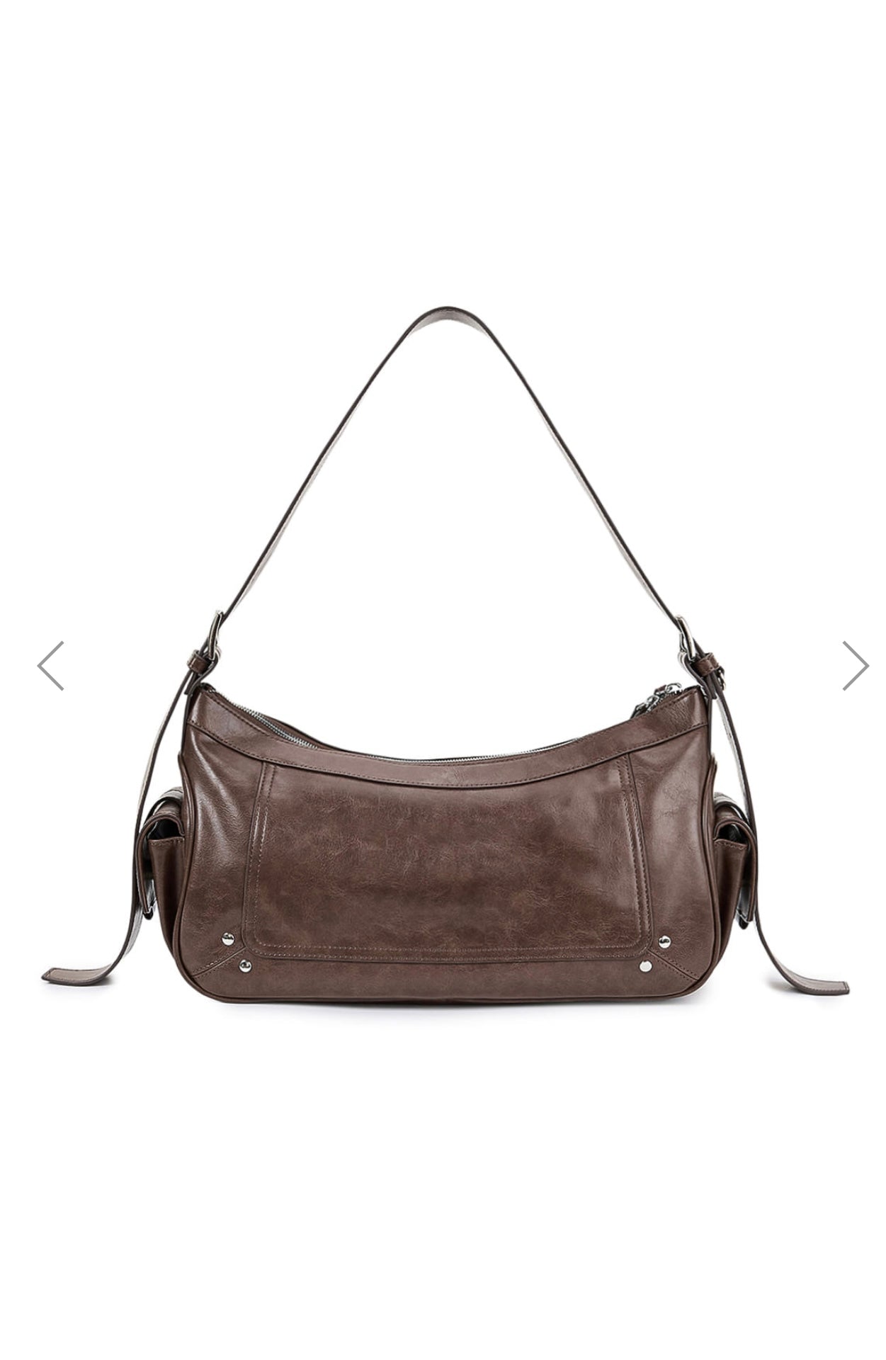 MATIN KIM RIVET POINT QUAD SHOULDER BAG IN BROWN