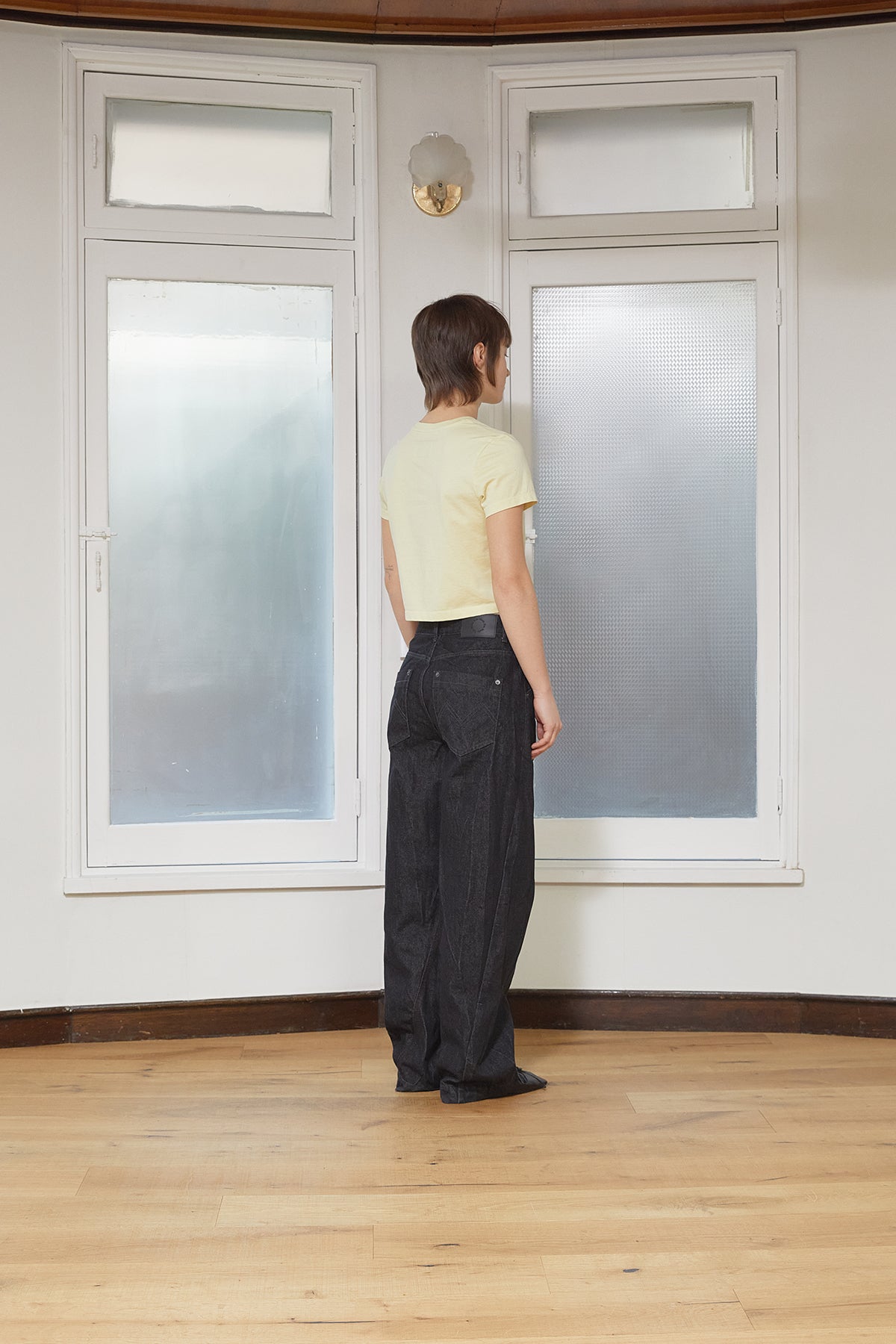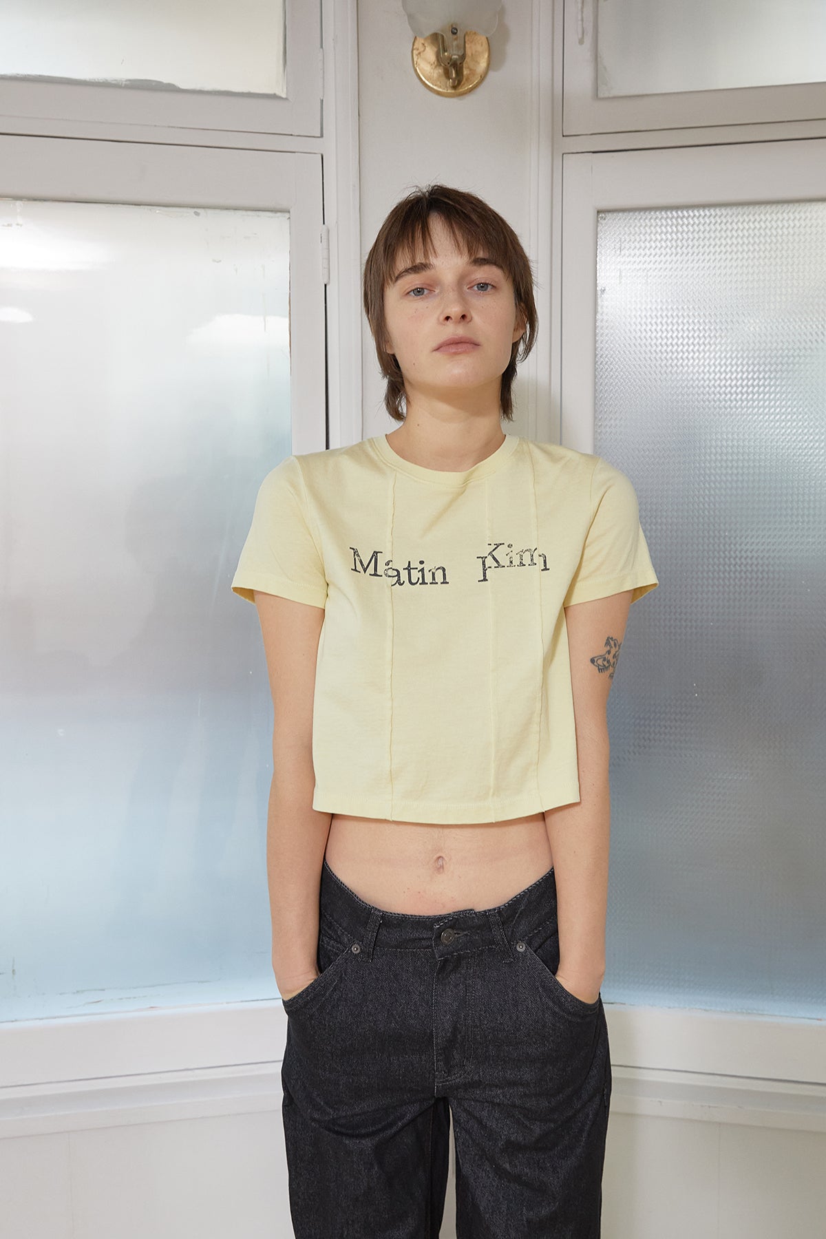 Matin Kim UNBALANCE TYPO LOGO CROP TOP IN YELLOW