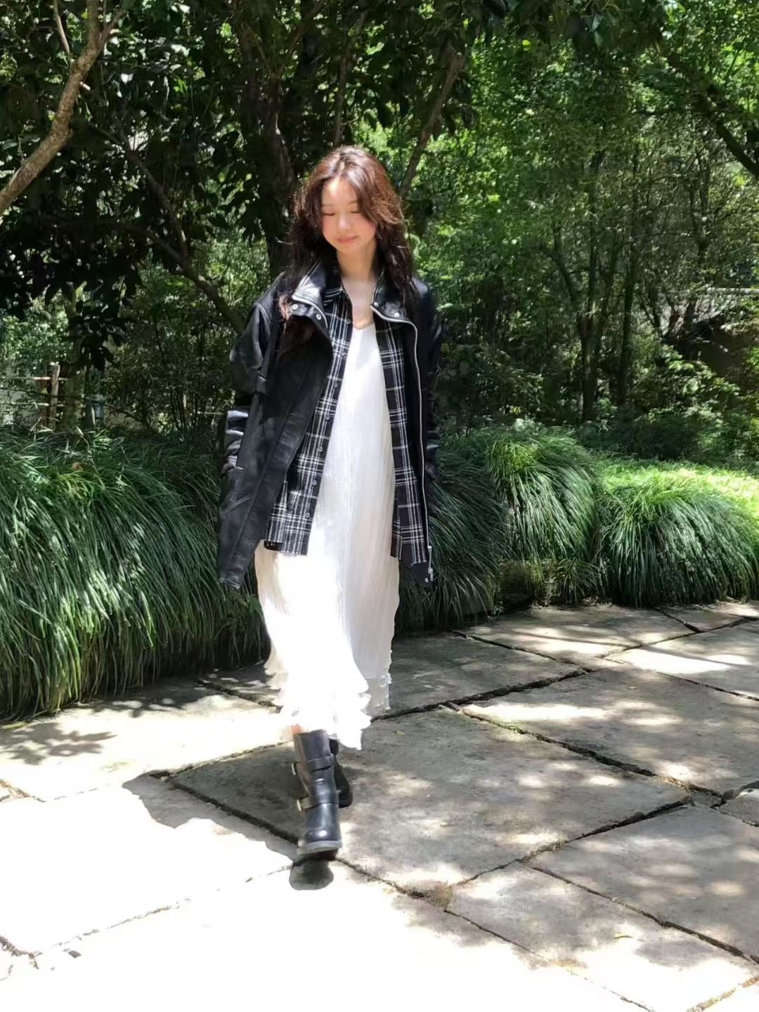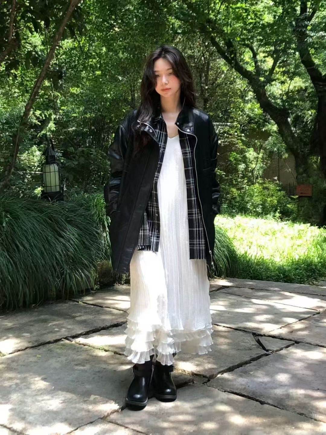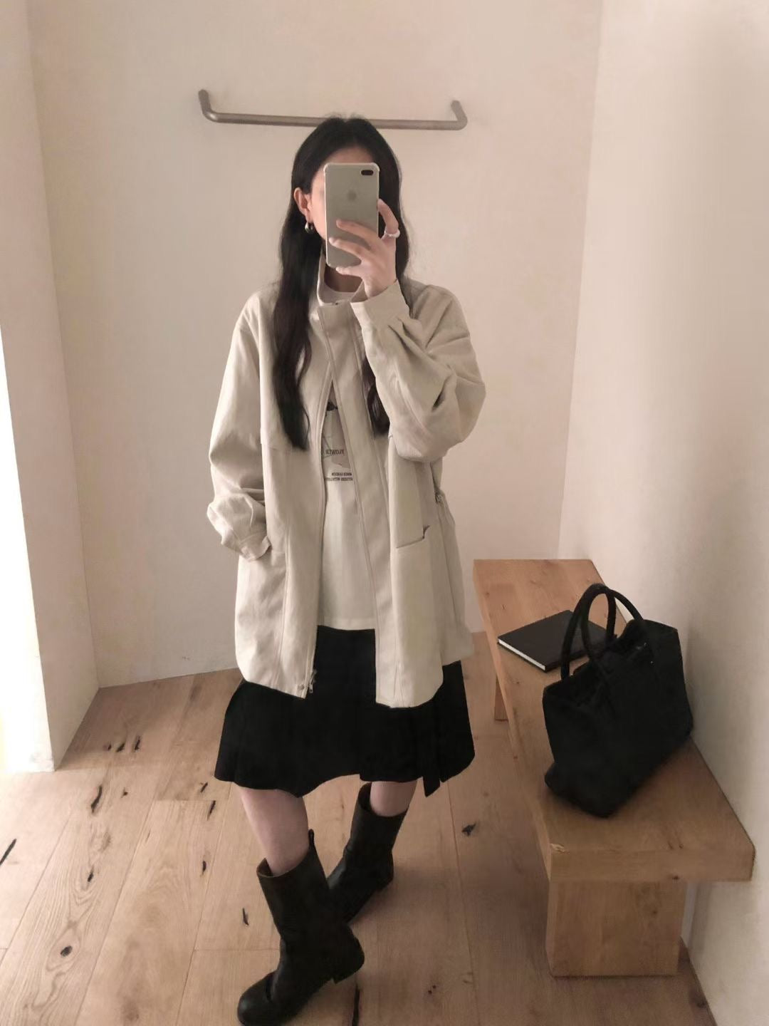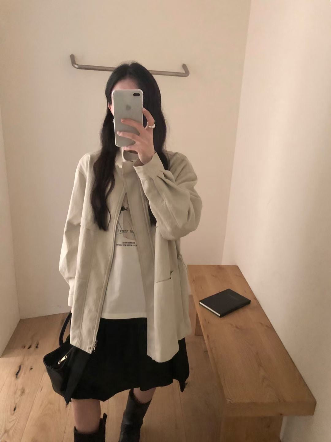 Stand collar ajustable waist faux leather jacket