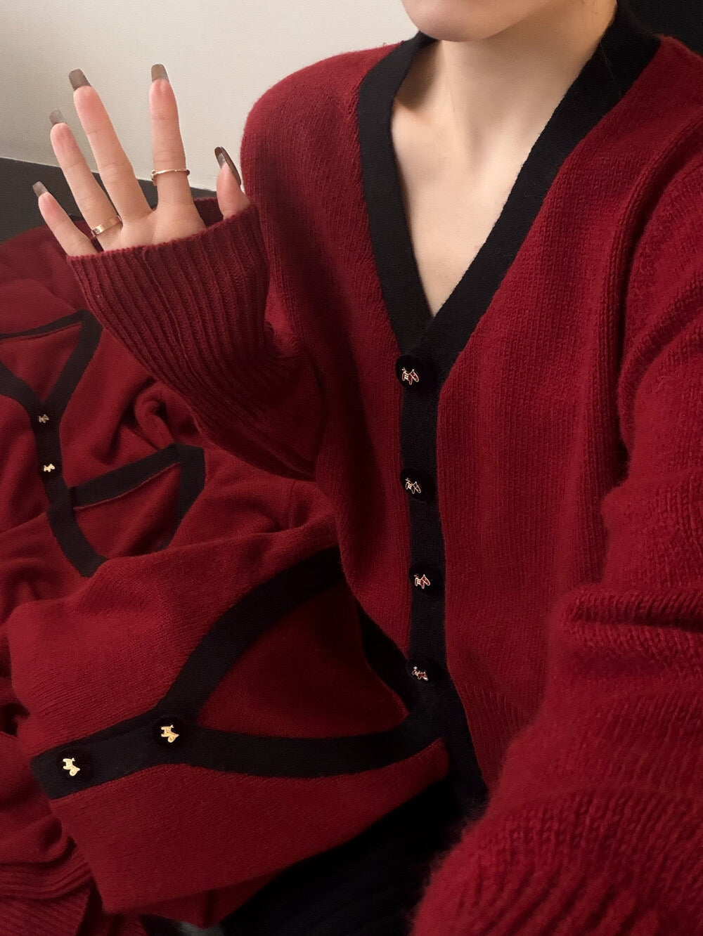 V neck horse button cardigan