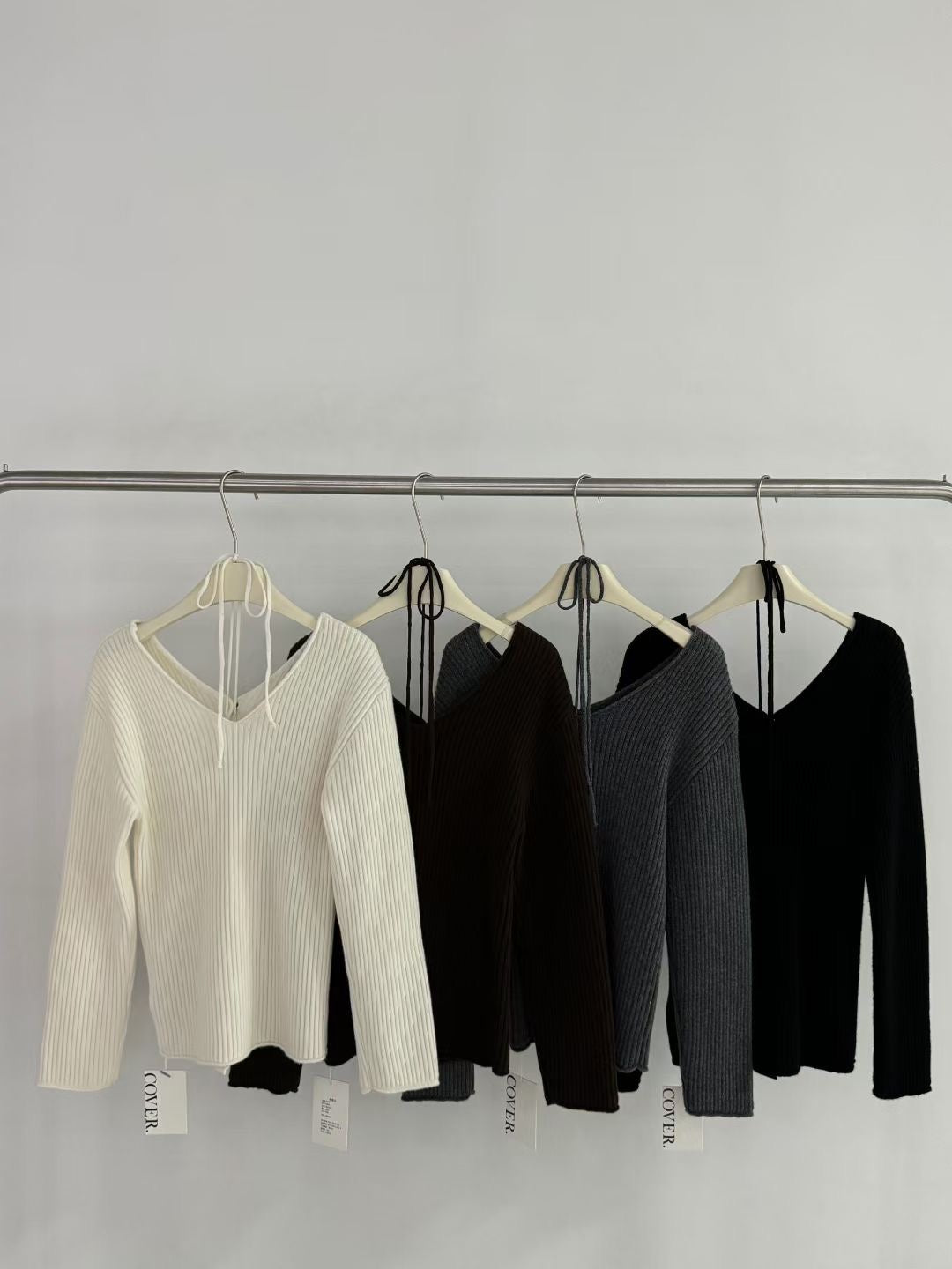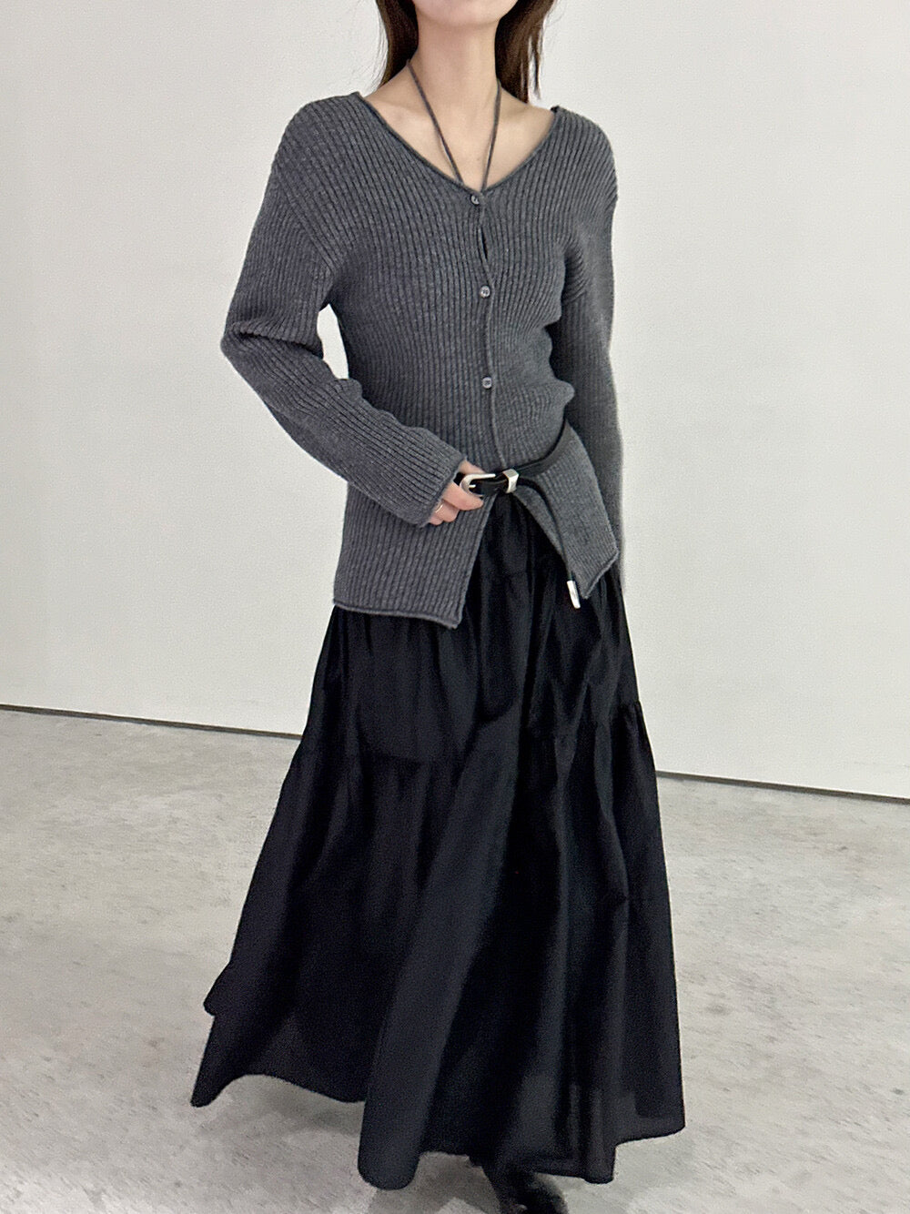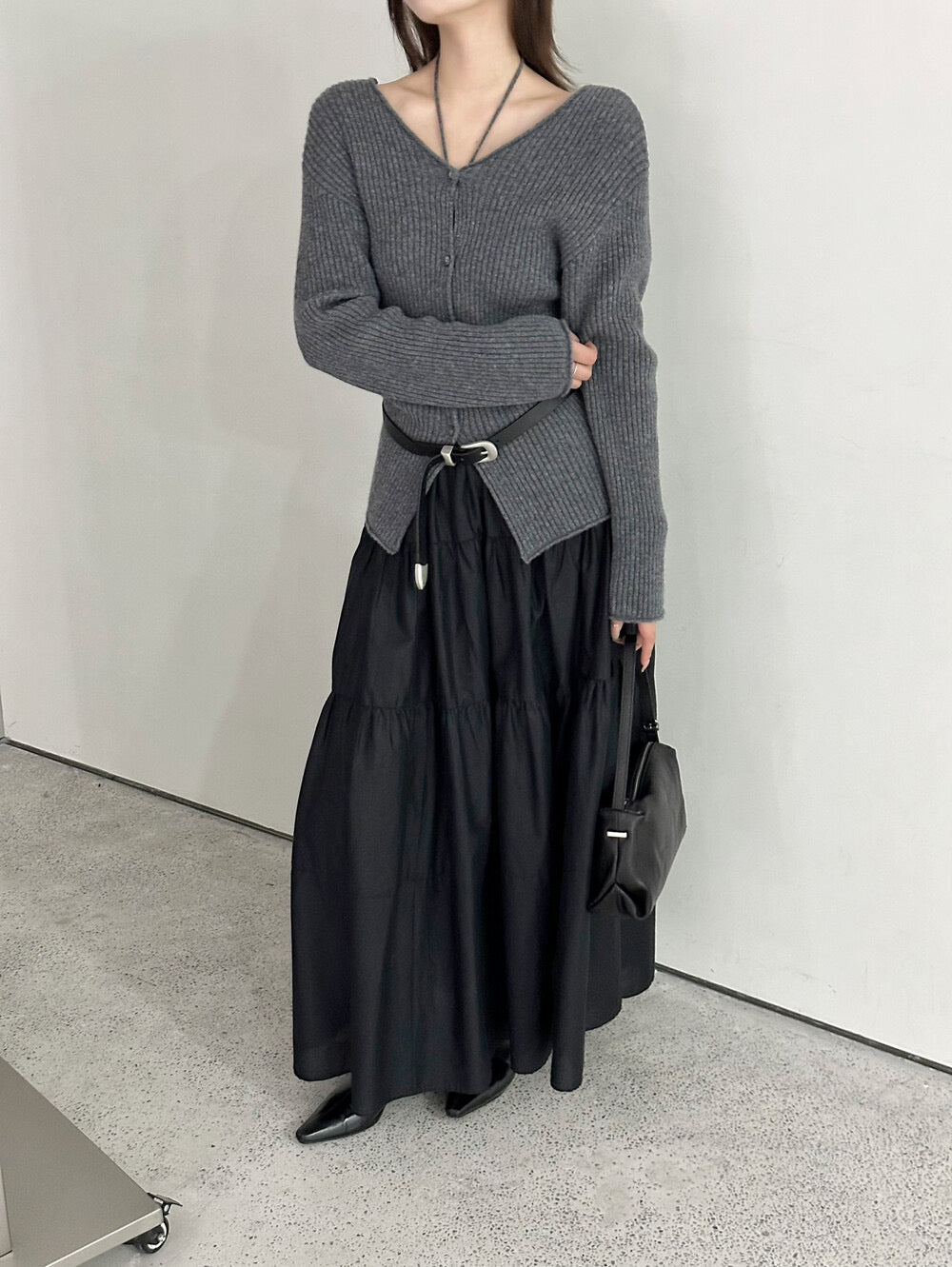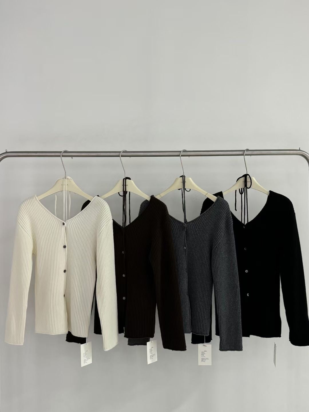 V-neck laced knitted cardigan sweater(100% wool)