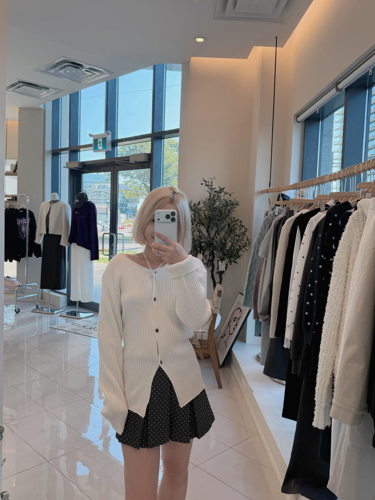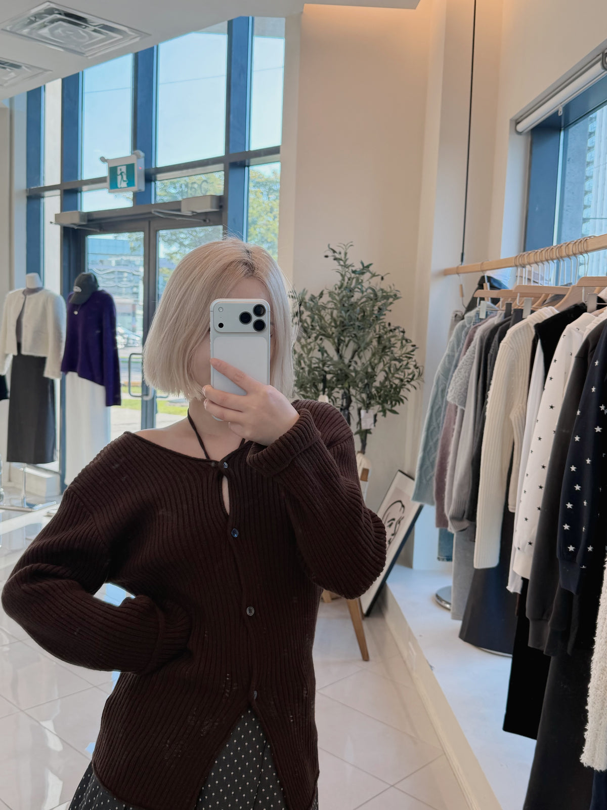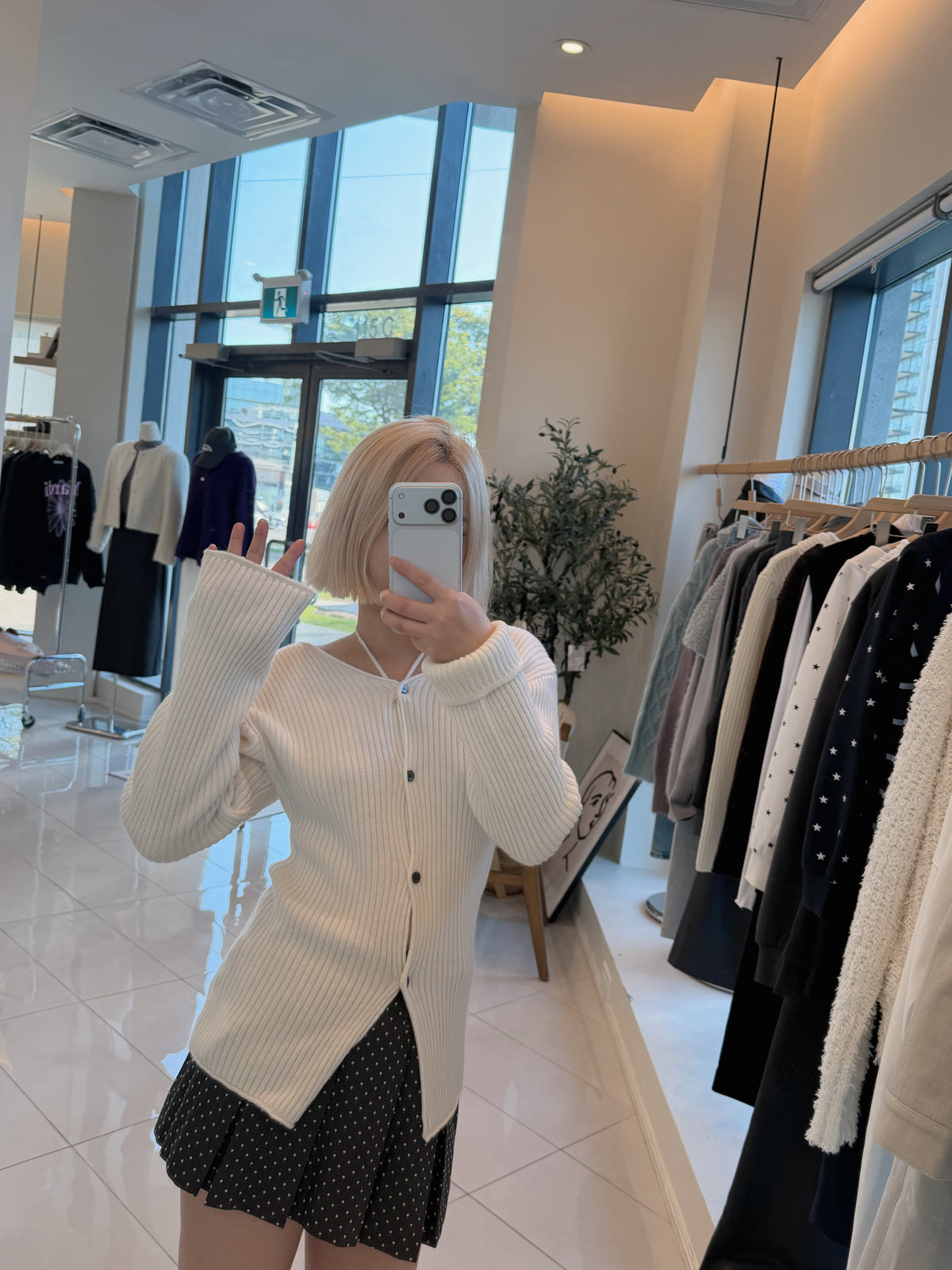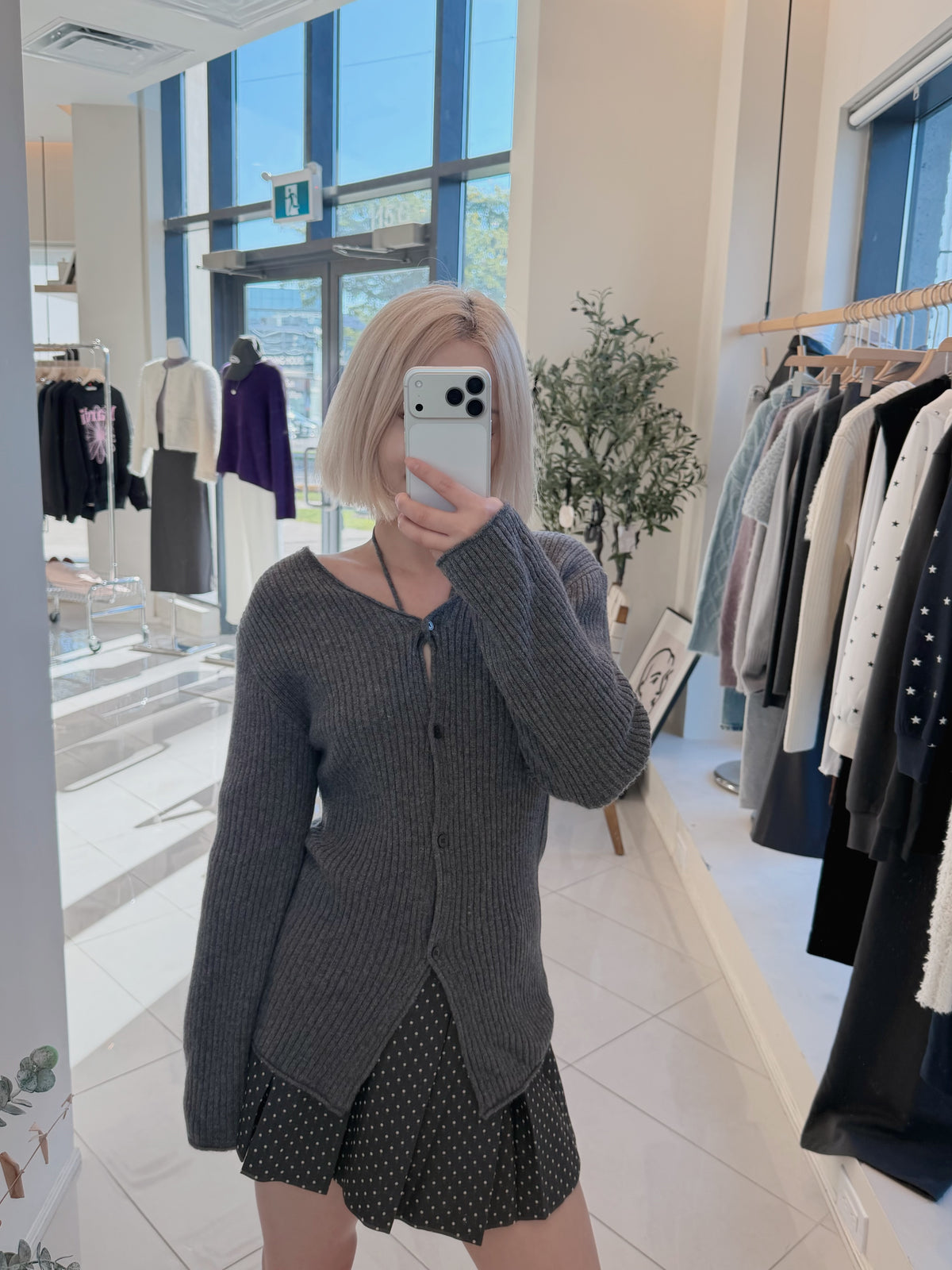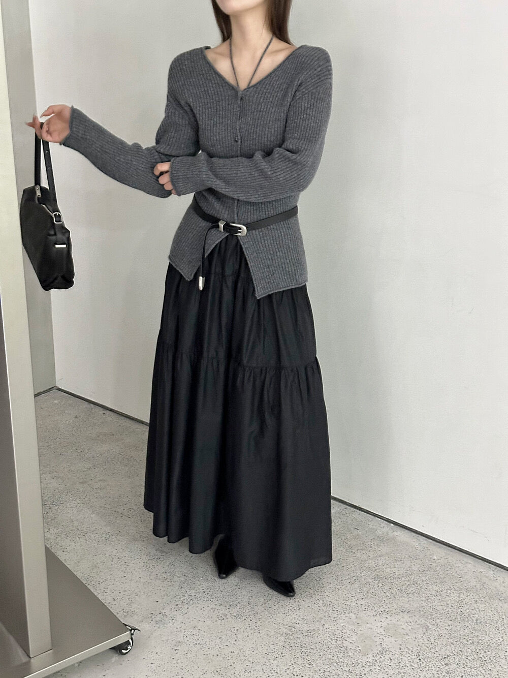 V-neck laced knitted cardigan sweater(100% wool)