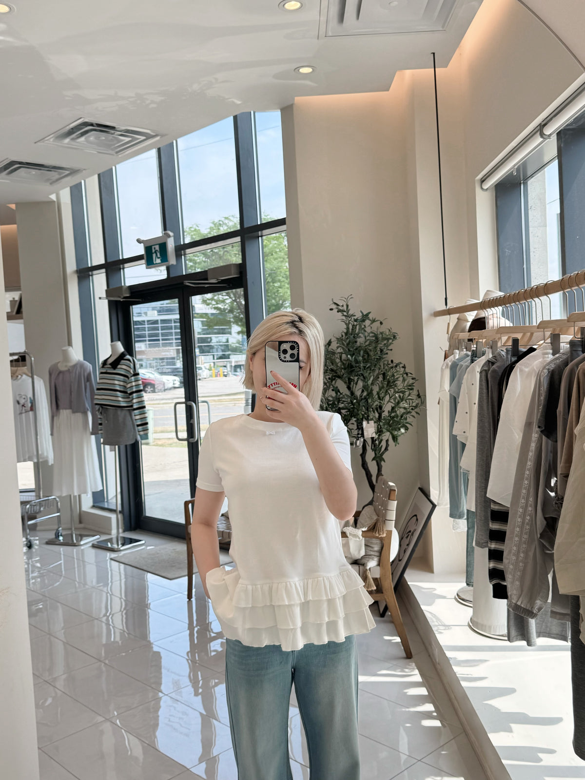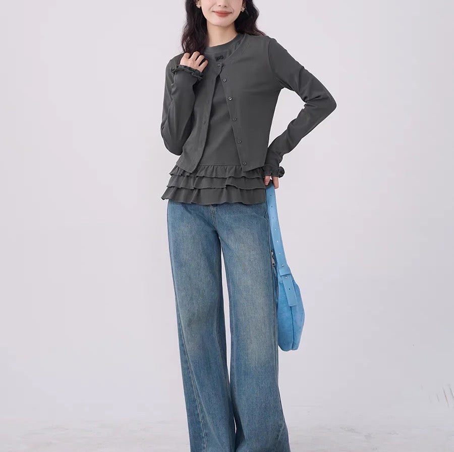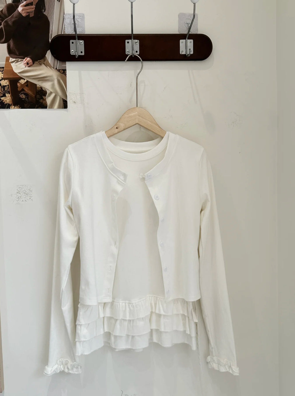 Ruffled Hem Cardigan Short Sleeve Two-Piece Set