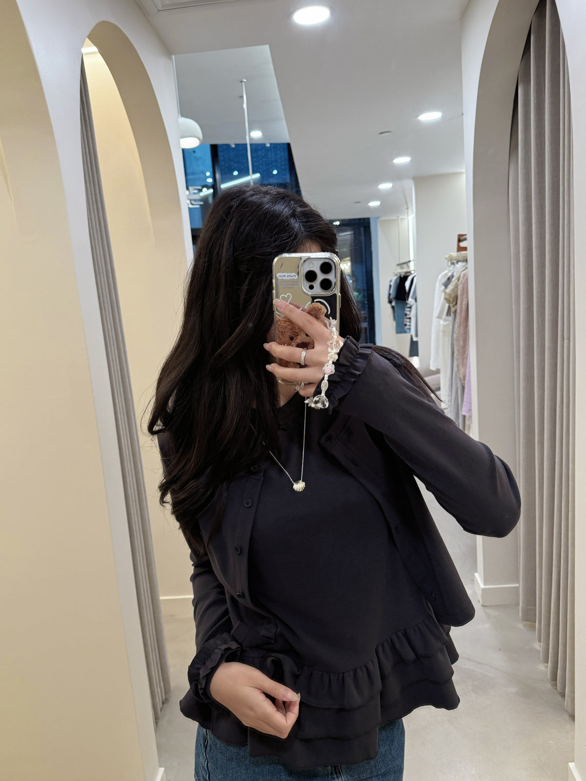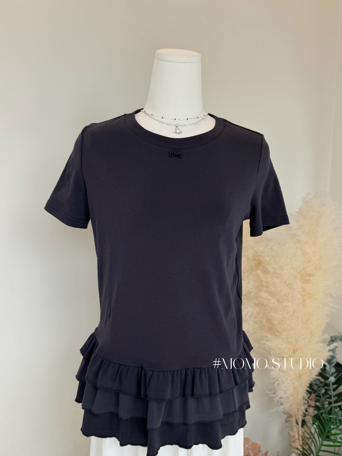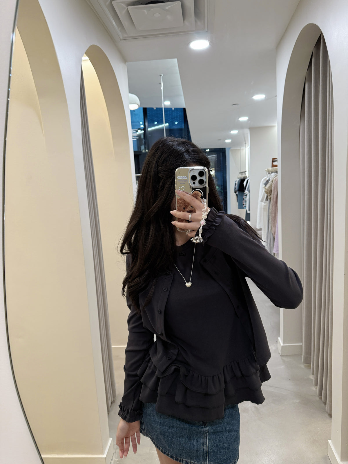 Ruffled Hem Cardigan Short Sleeve Two-Piece Set