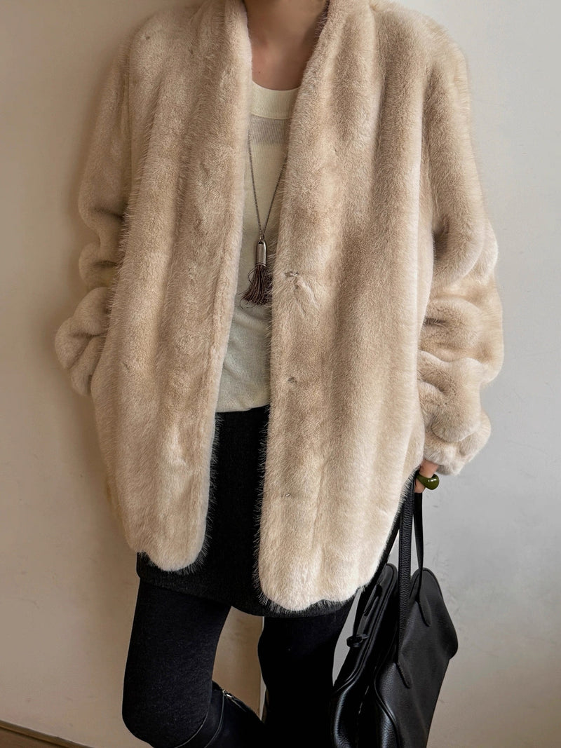 Curly Eco-Fur V-neck jacket