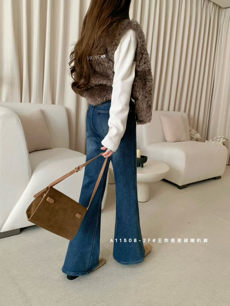 Fleece casual belt jeans