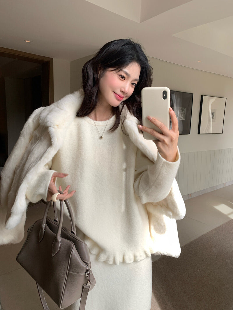 Ruffle bottom sweater withlong skirt set