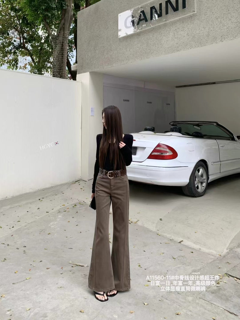Stitched wide leg flare jeans