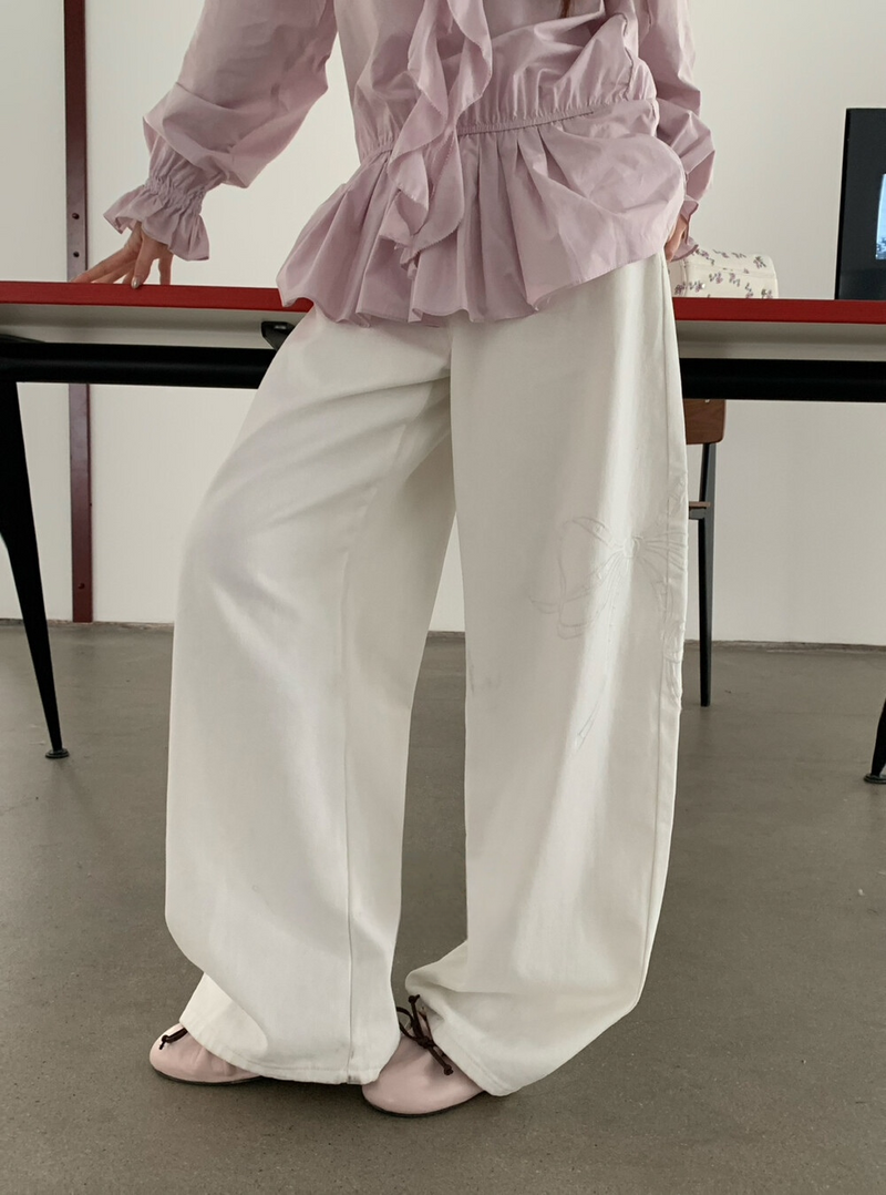 Bowknot embroidered jeans