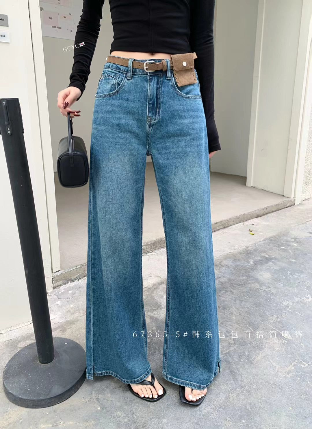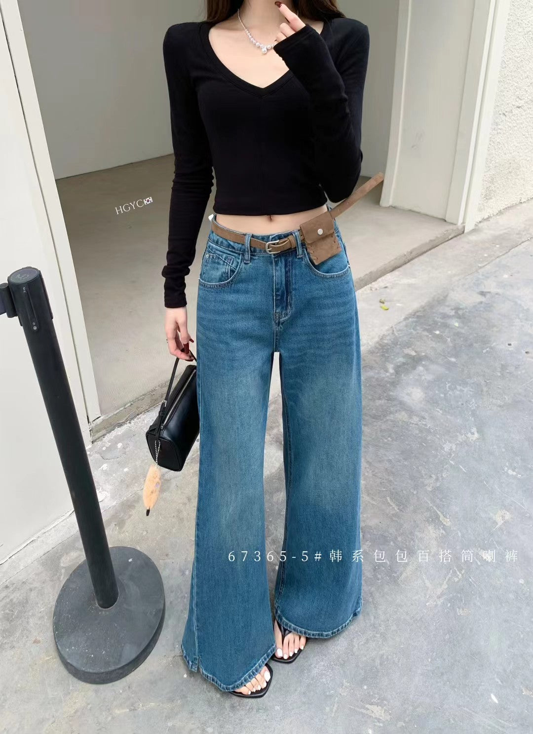 Waist bag wide leg flare jeans