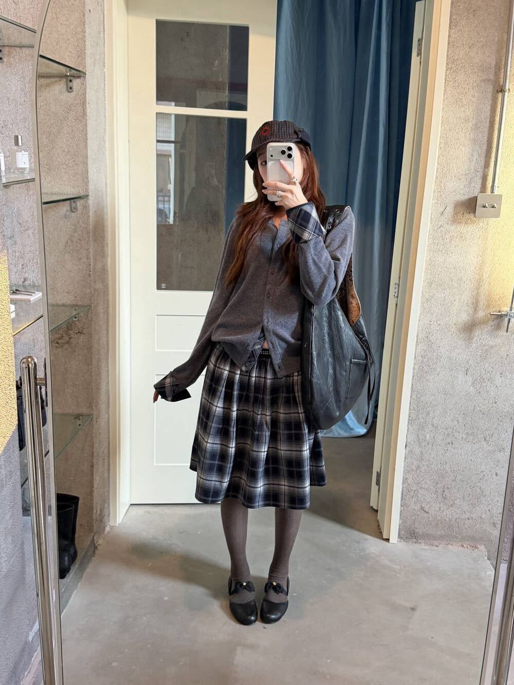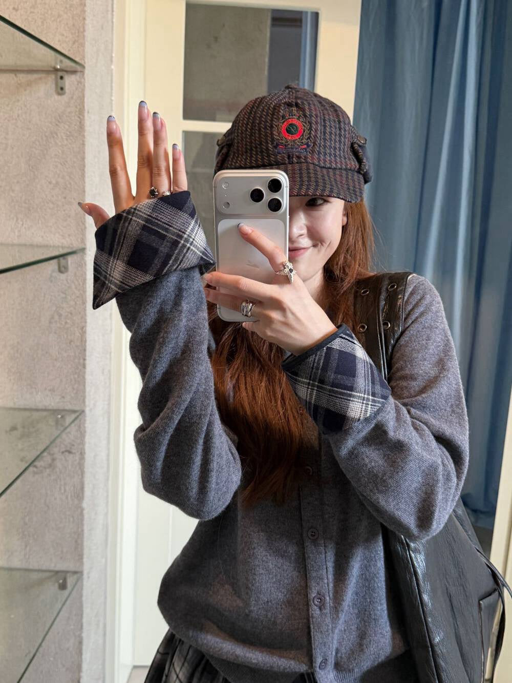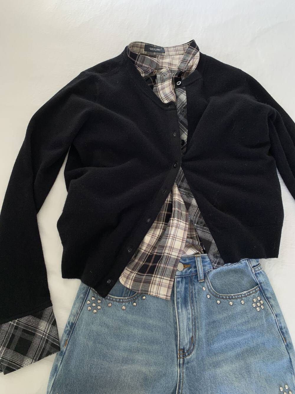 Plaid patchwork cardigan