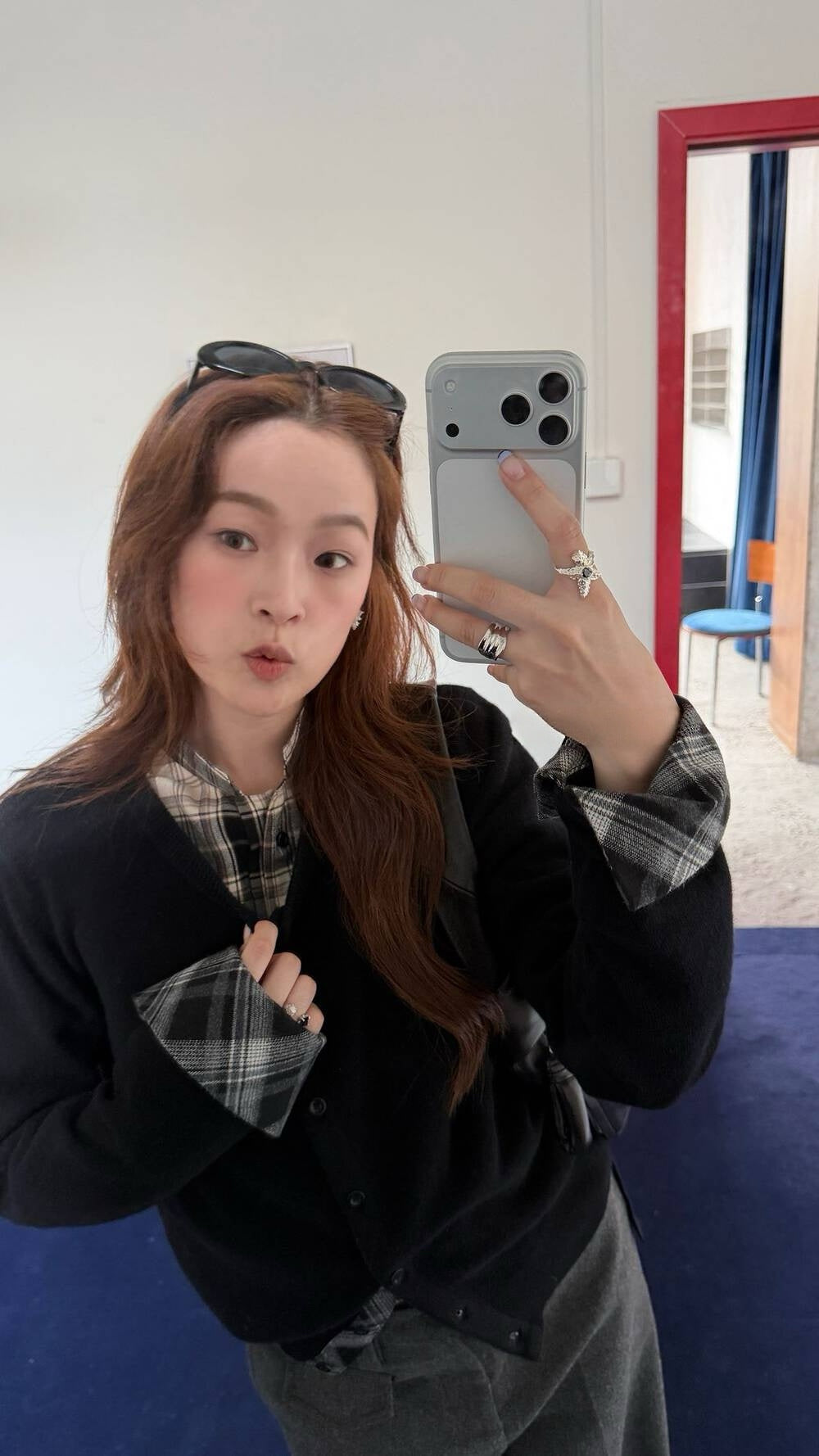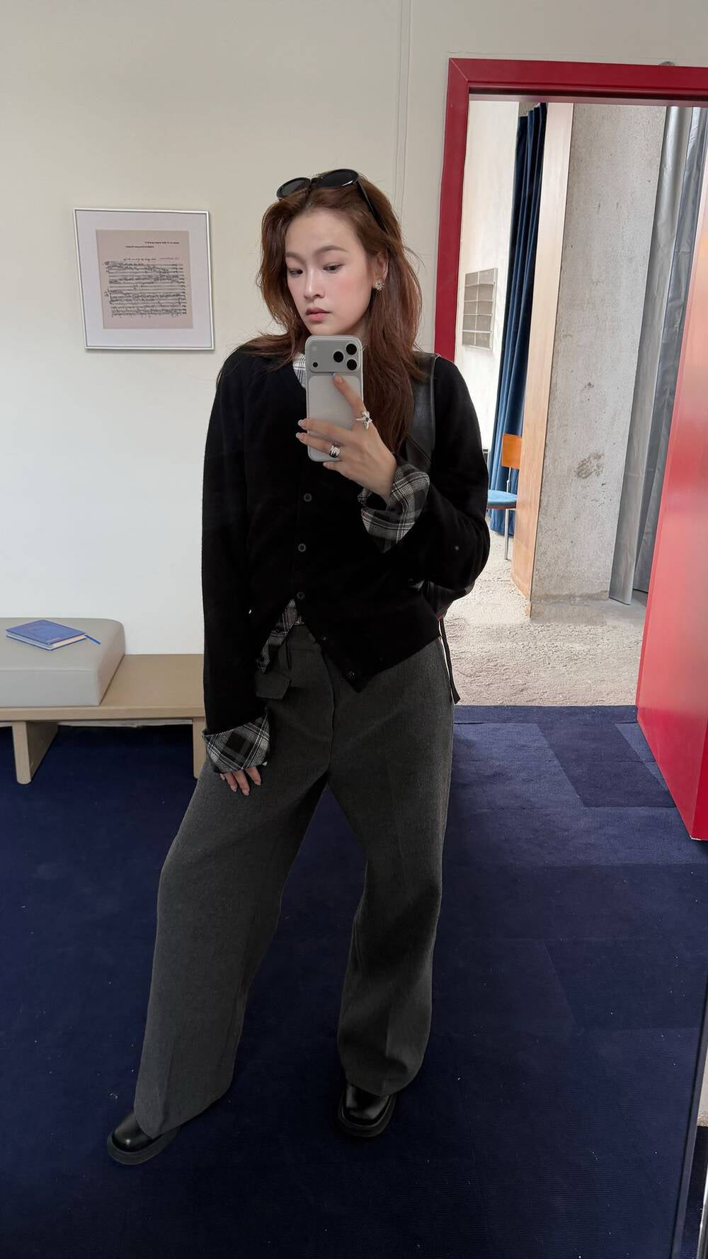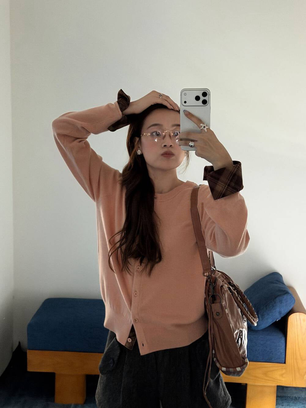 Plaid patchwork cardigan