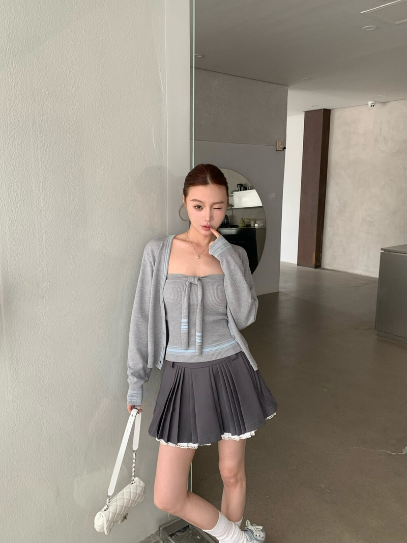 Pleated belt skirt