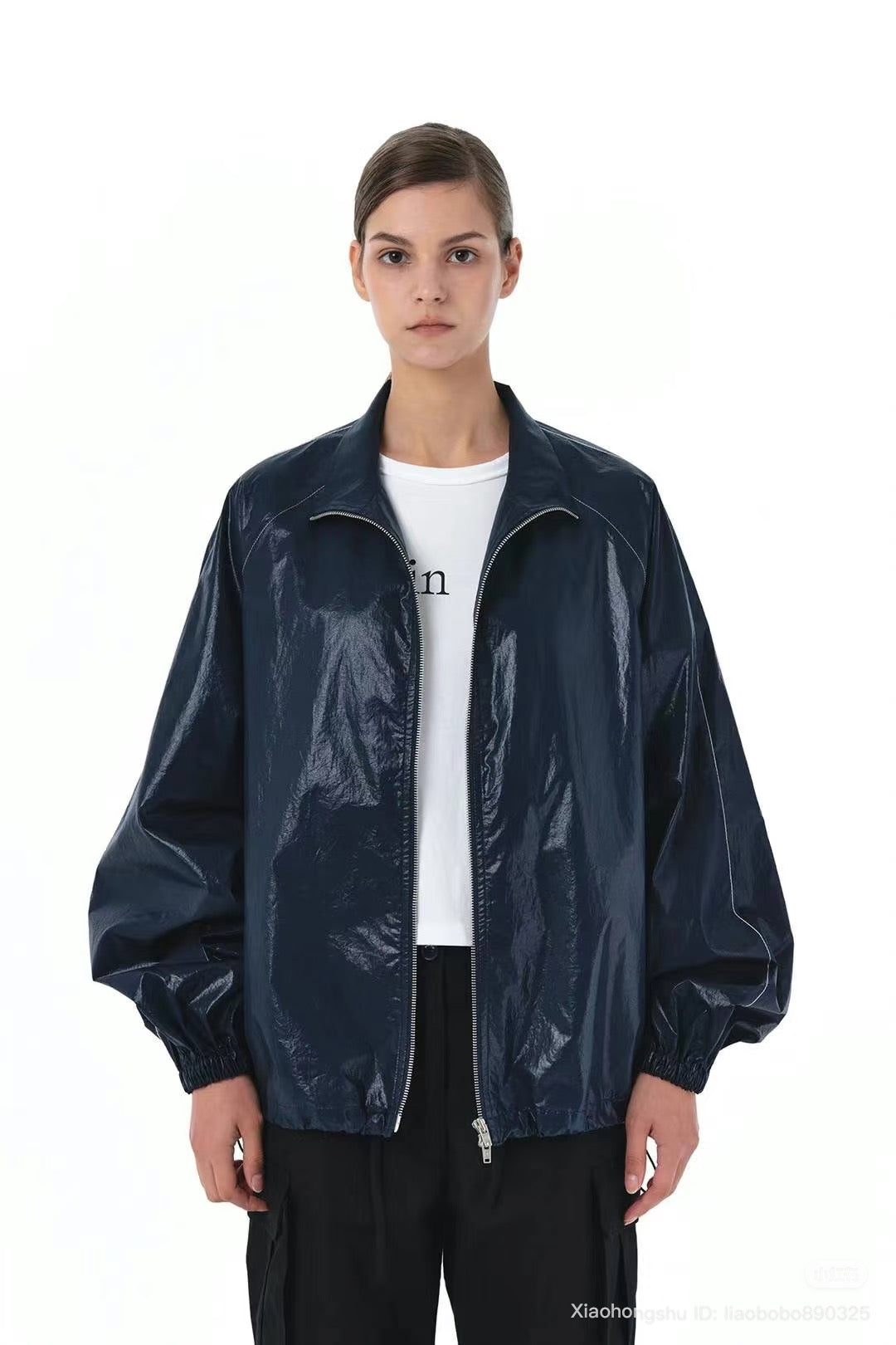 MATIN KIM LOGO COATING JUMPER IN NAVY
