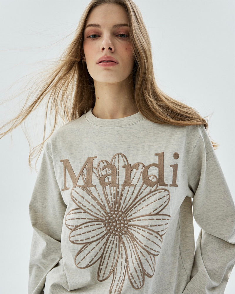 MARDI SWEATSHIRT FLOWERMARDI NEEDLEWORK_OATMEAL TAUPE