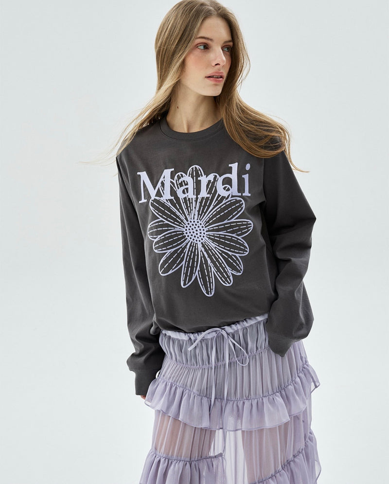 MARDI TSHIRT LONG SLEEVE FLOWERMARDI NEEDLEWORK_CHARCOAL LAVENDER