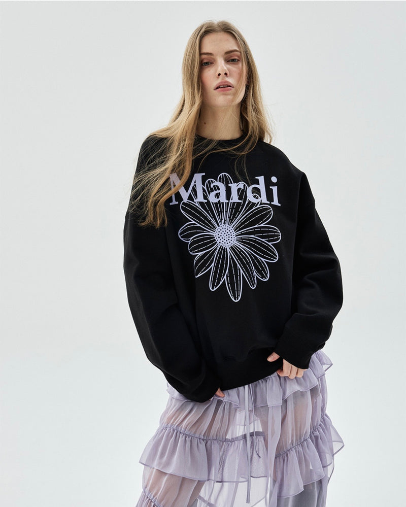 MARDI SWEATSHIRT SWING THE TAIL DDANJI FLOWER CHOKER_BLACK IVORY