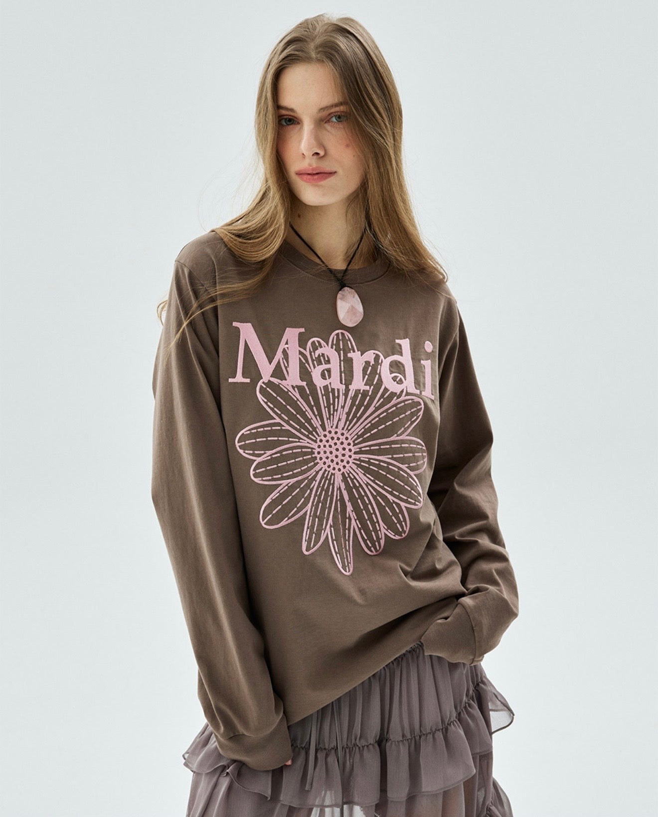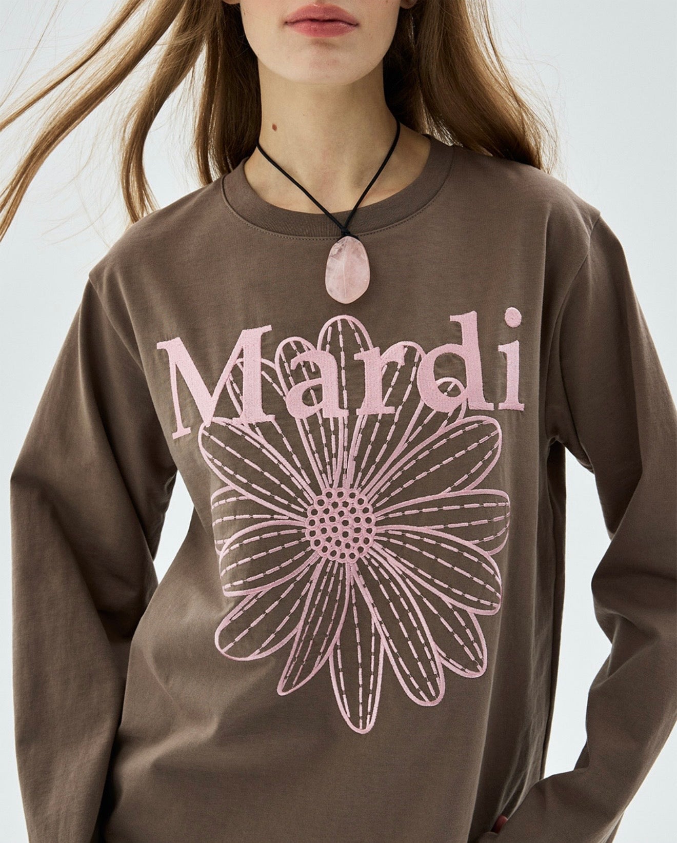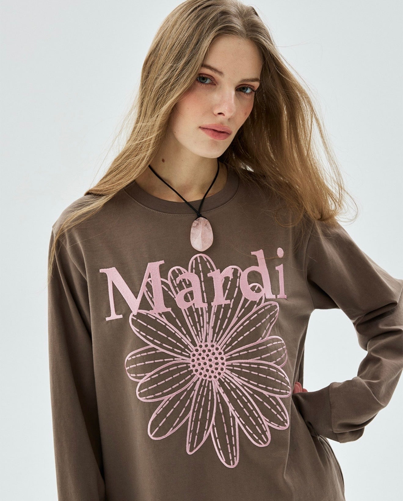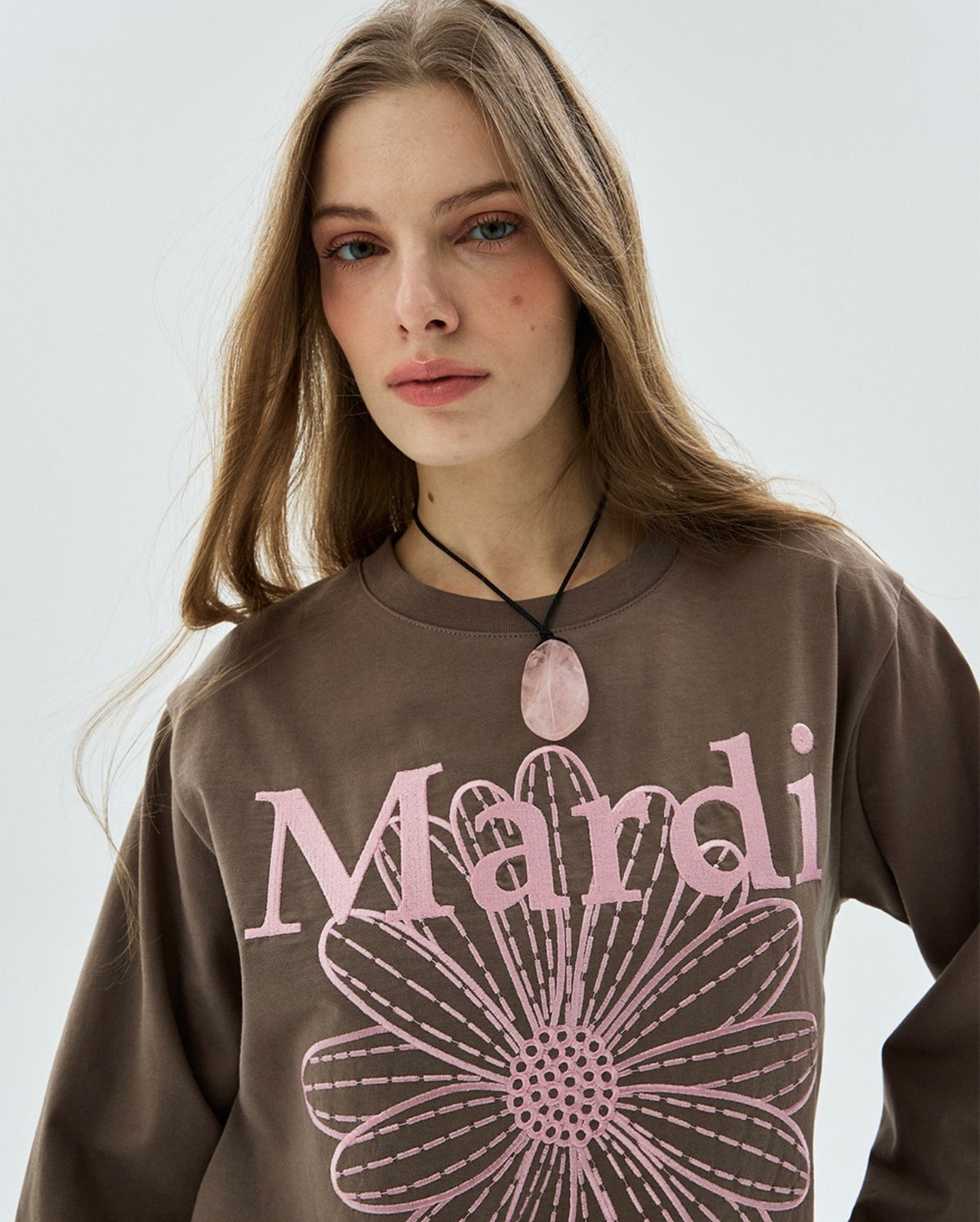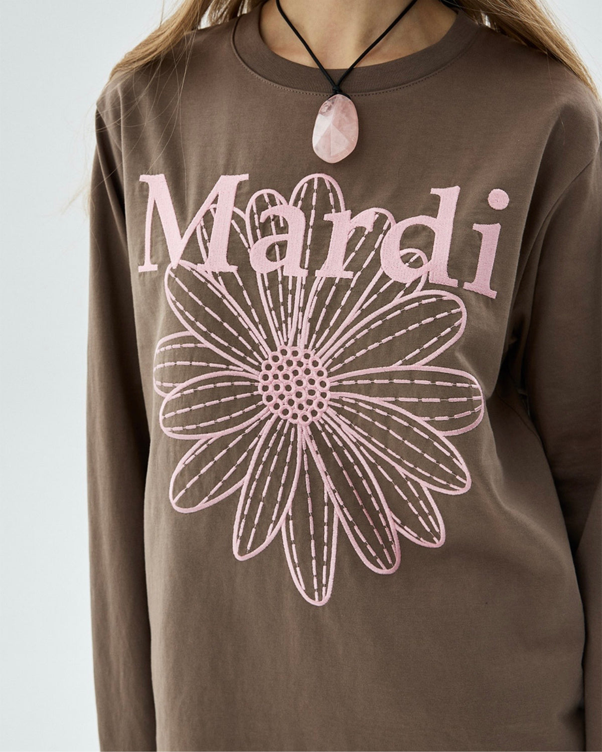 MARDI TSHIRT LONG SLEEVE FLOWERMARDI NEEDLEWORK_TAUPE PINK