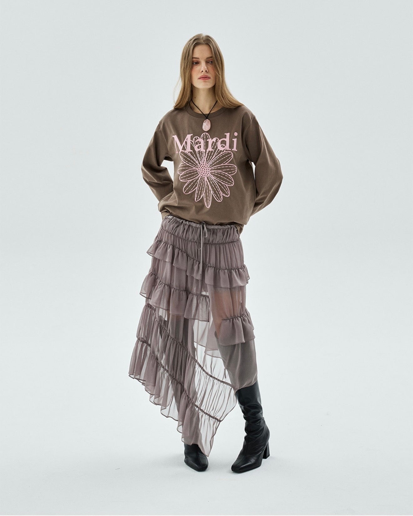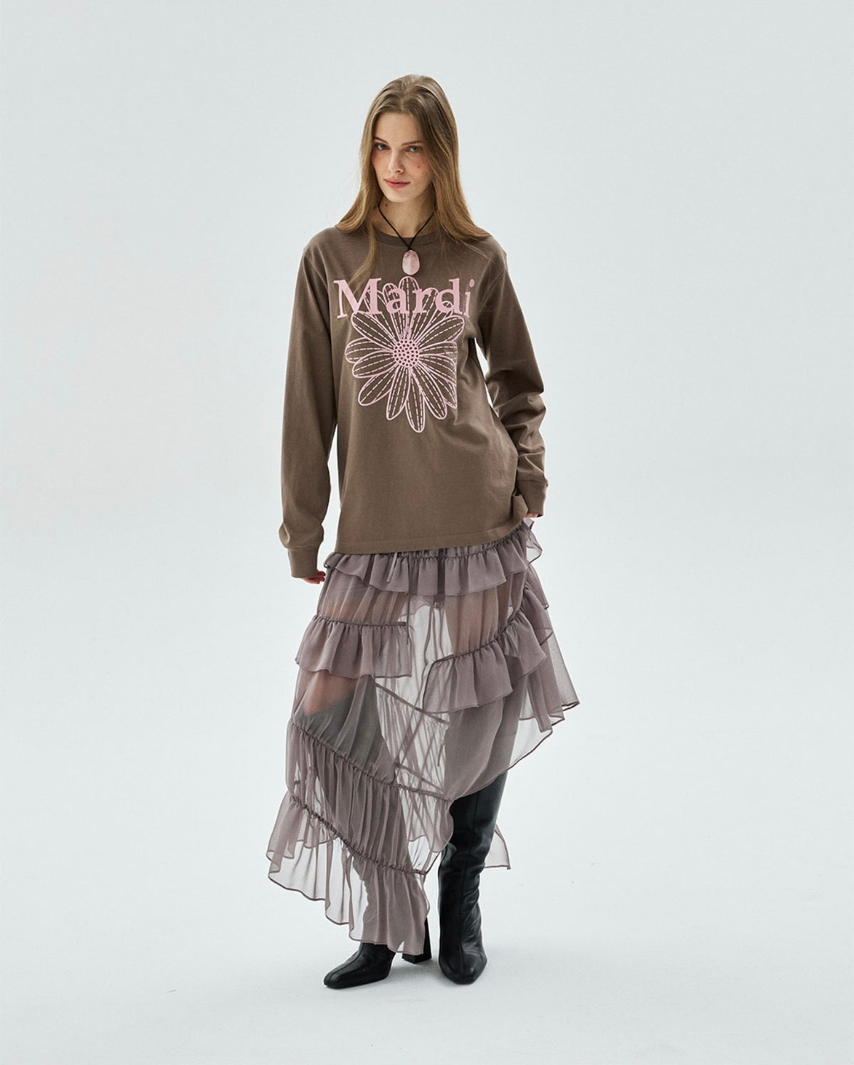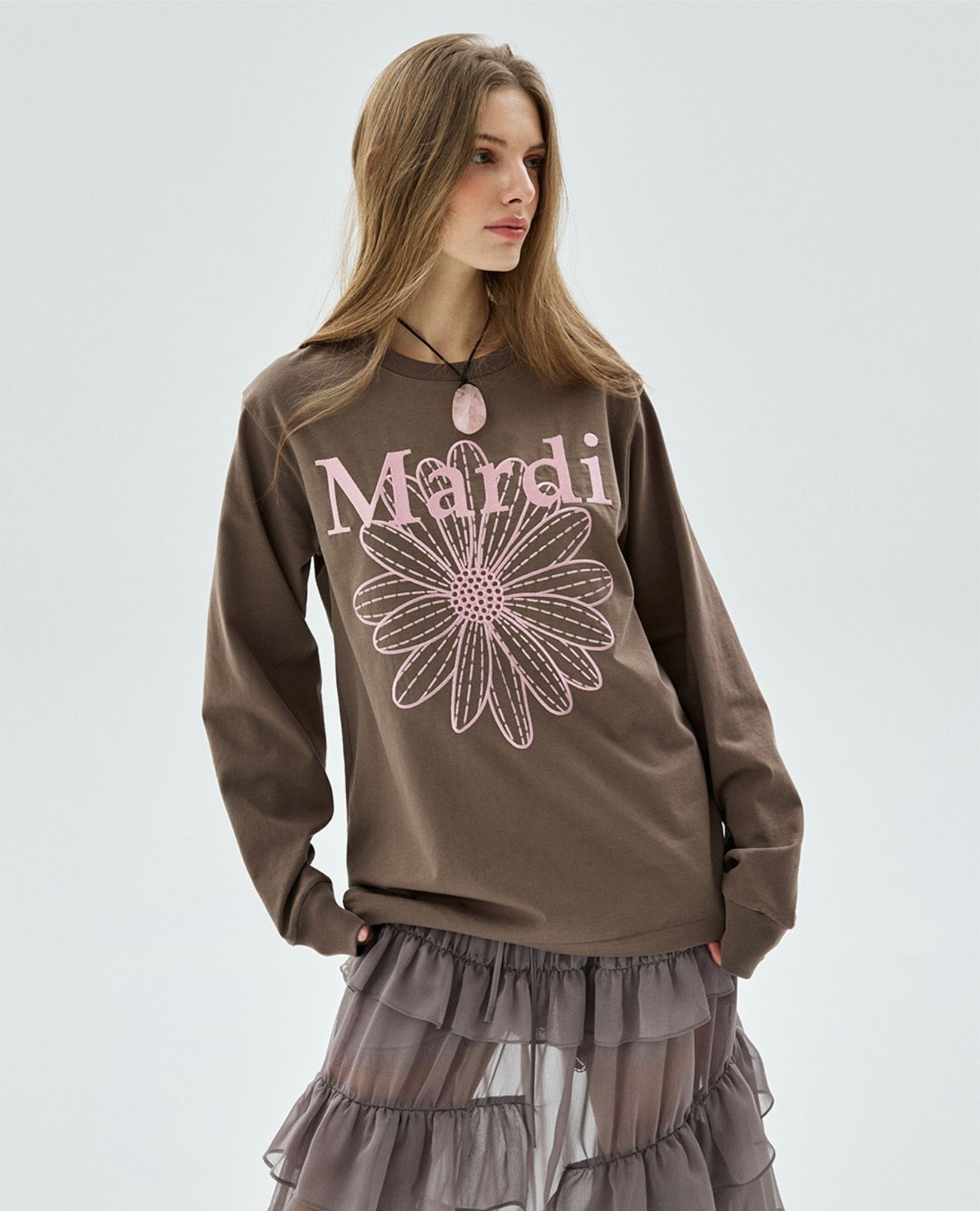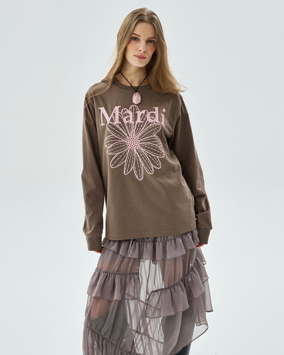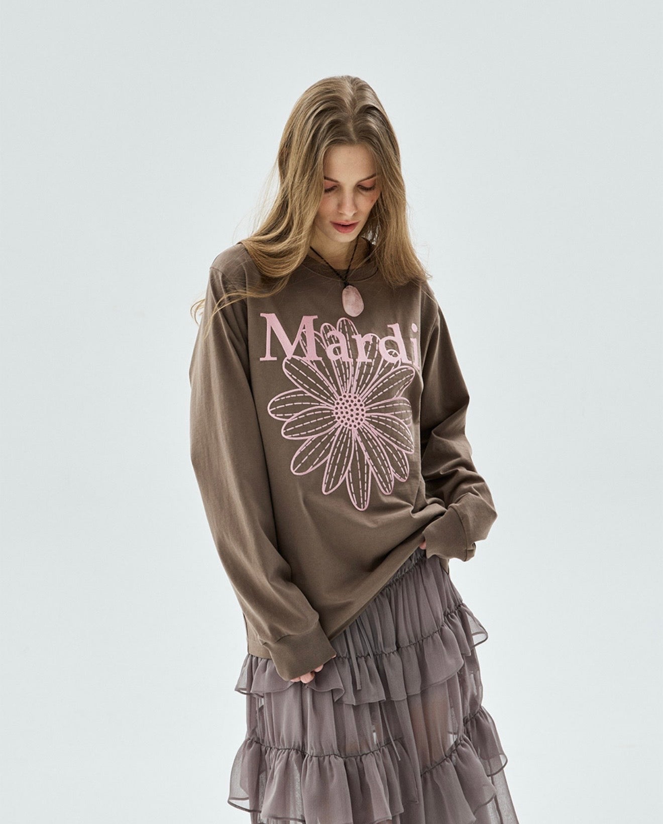 MARDI TSHIRT LONG SLEEVE FLOWERMARDI NEEDLEWORK_TAUPE PINK