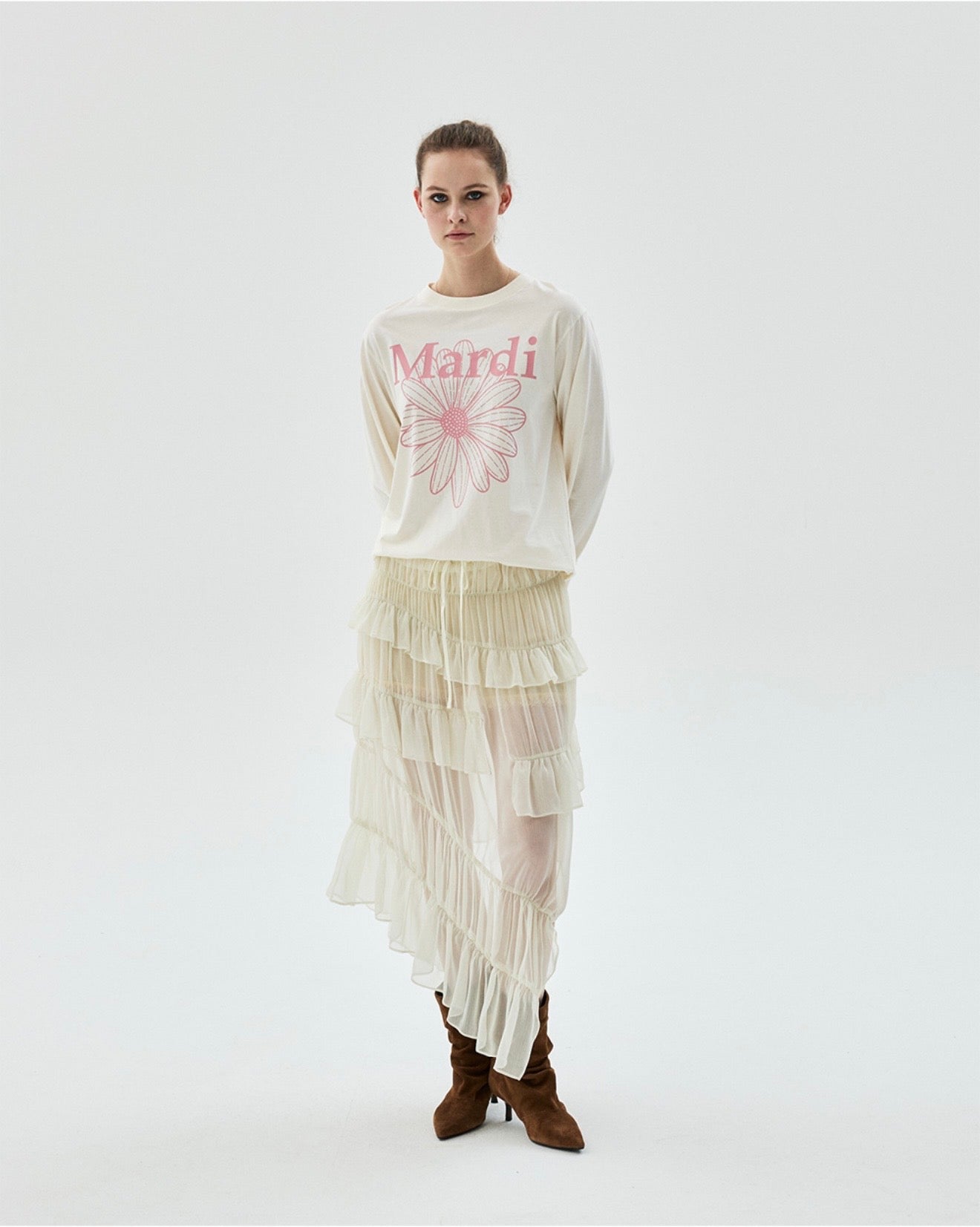 MARDI TSHIRT LONG SLEEVE FLOWERMARDI_CREAM INDIPINK