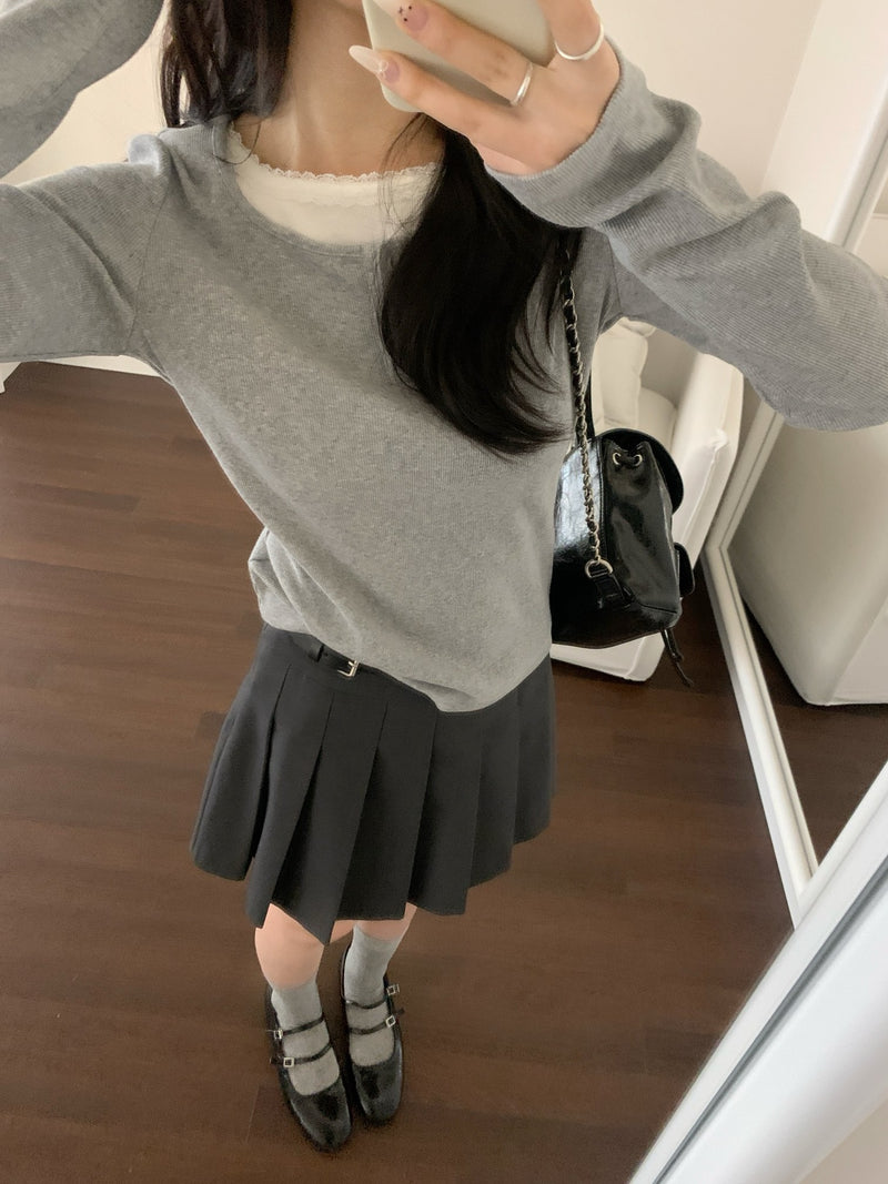 Belted double-piece knitted top sweater
