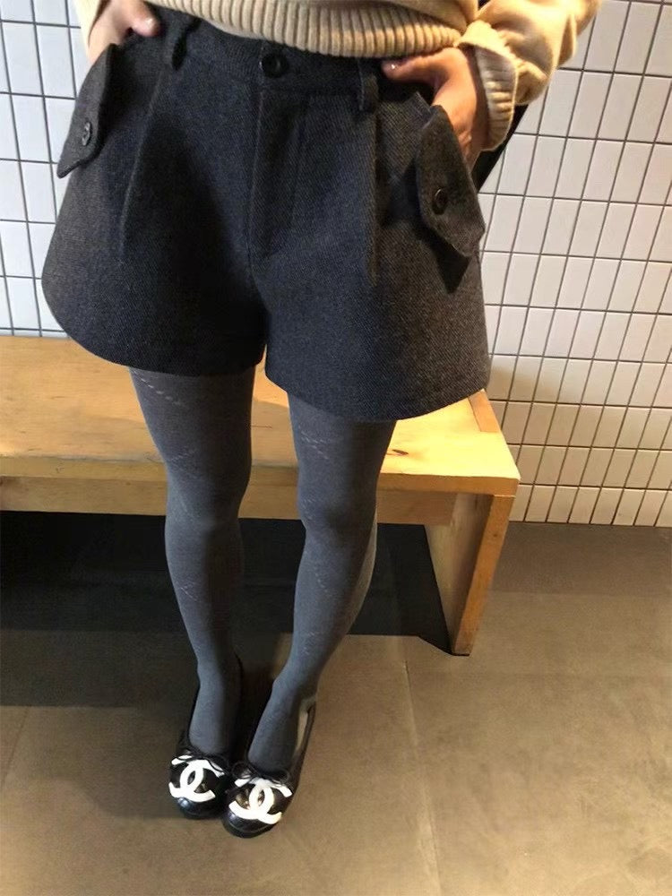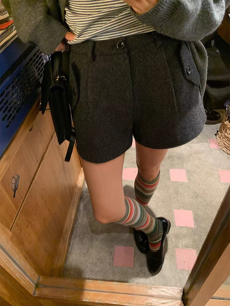 Button pocket wool shorts
