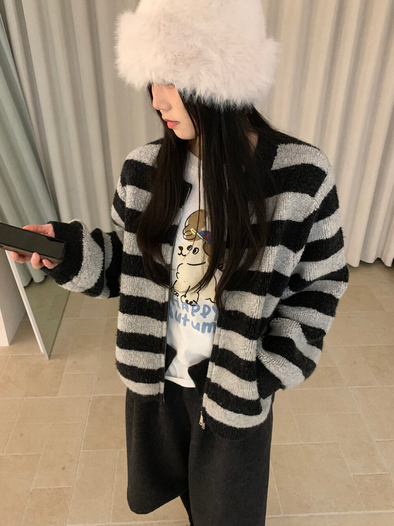 Looped wool stripe cardigan