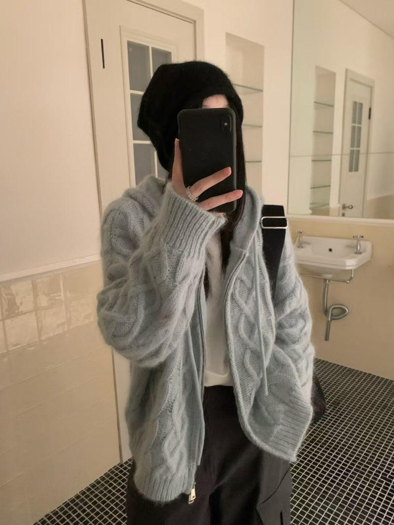Zipper hoodie cardigan