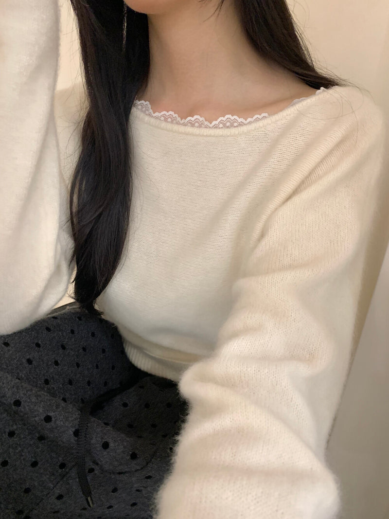 Lace slope shoulder sweater