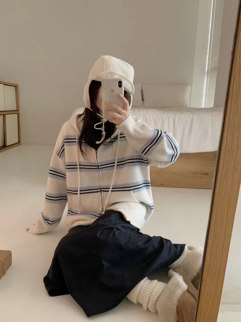 Stripe hoodie cardigan