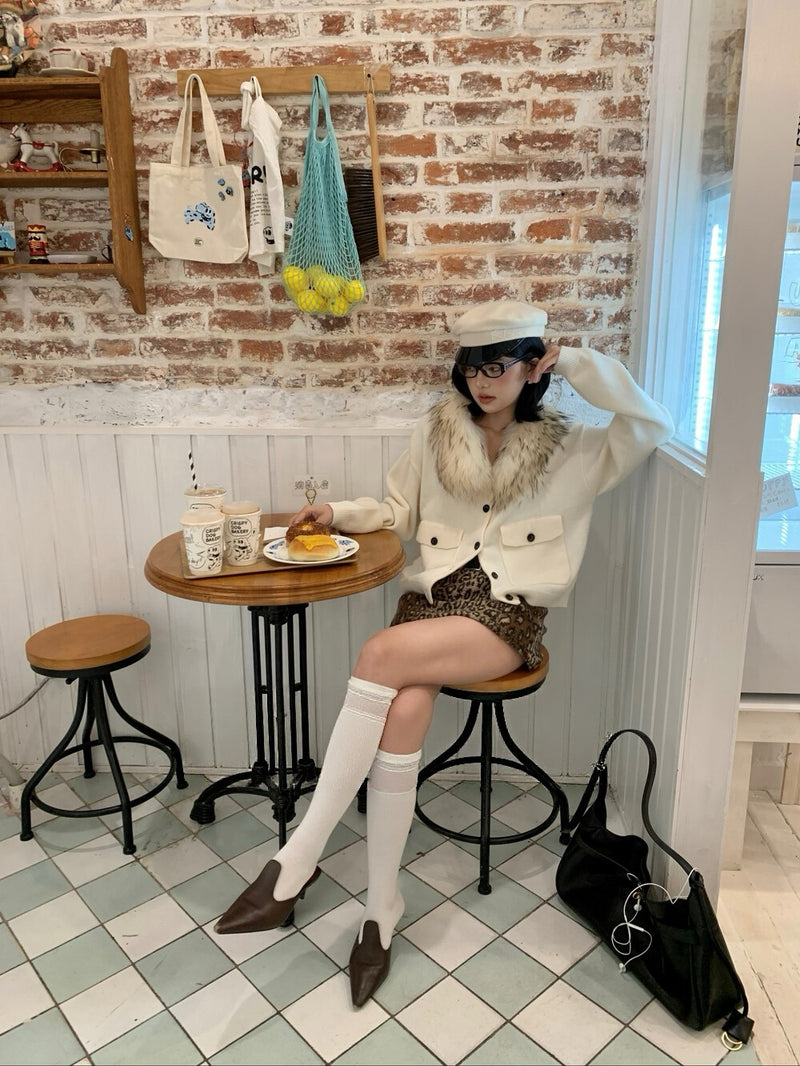 Fur collar cardigan