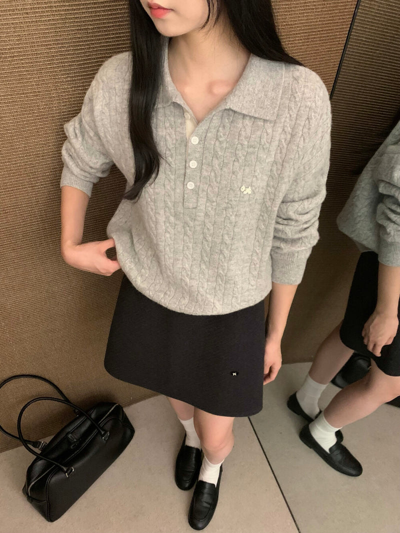 Dog Embroidery twist polo sweater