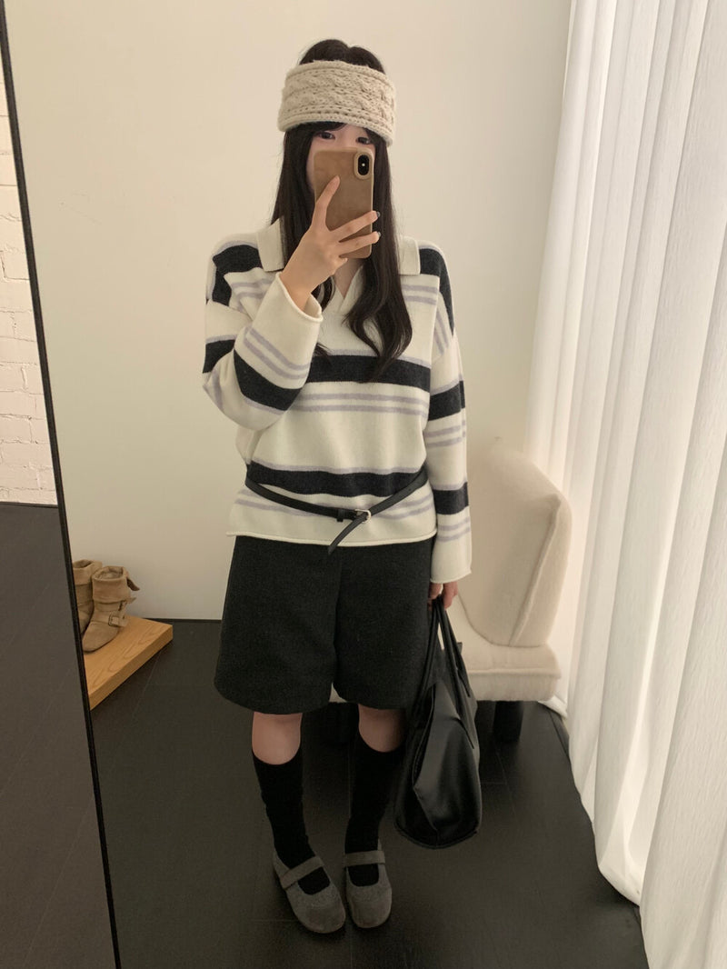 Polo stripe knit top