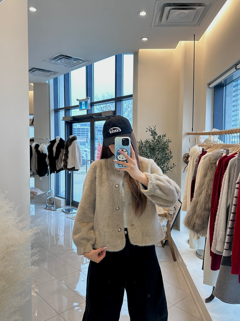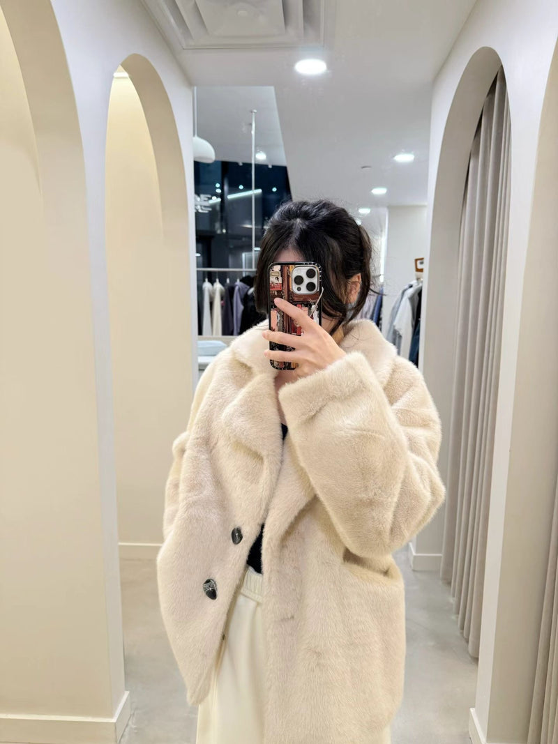 Stand-up collar plush fur coat